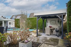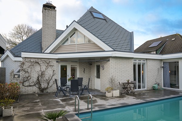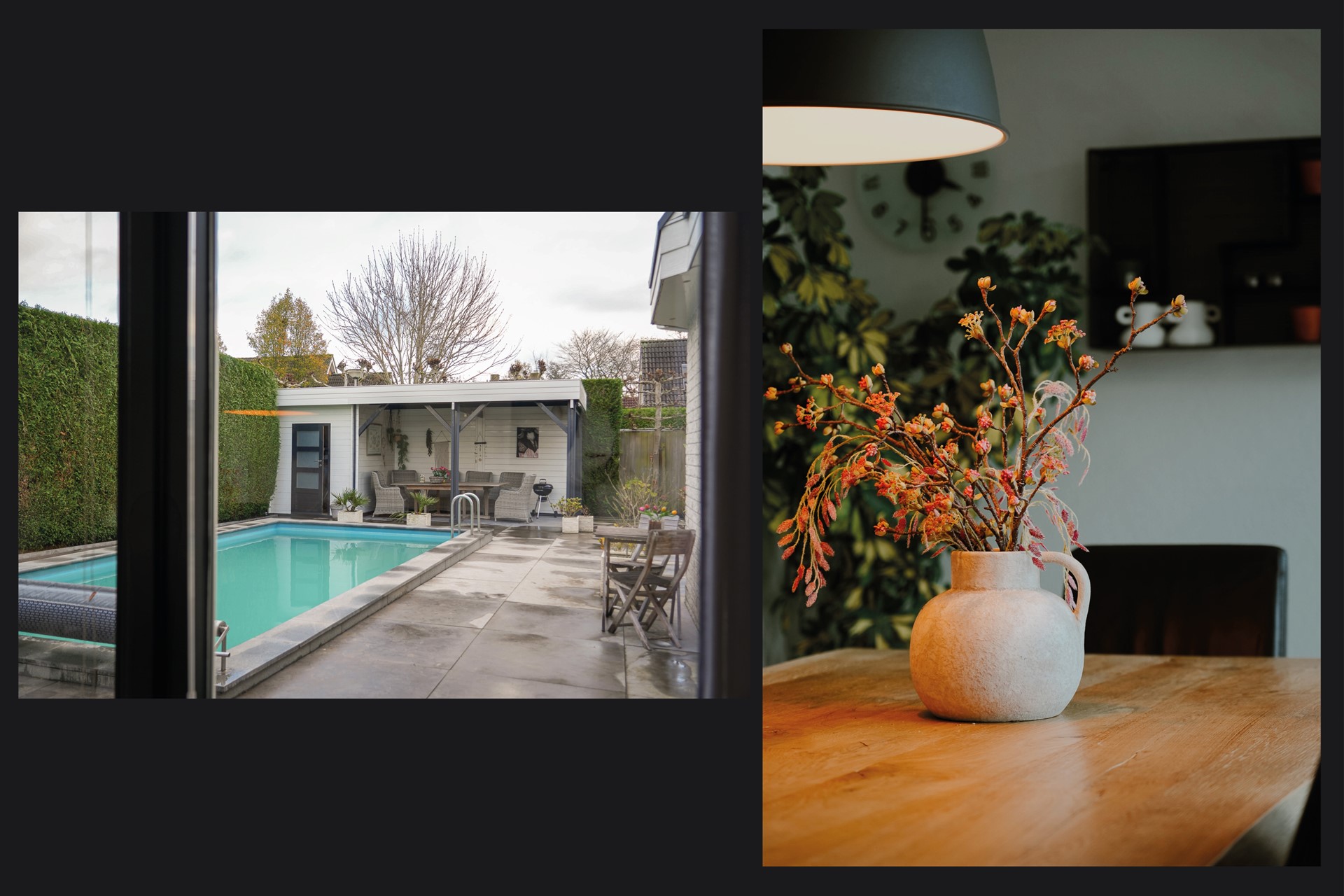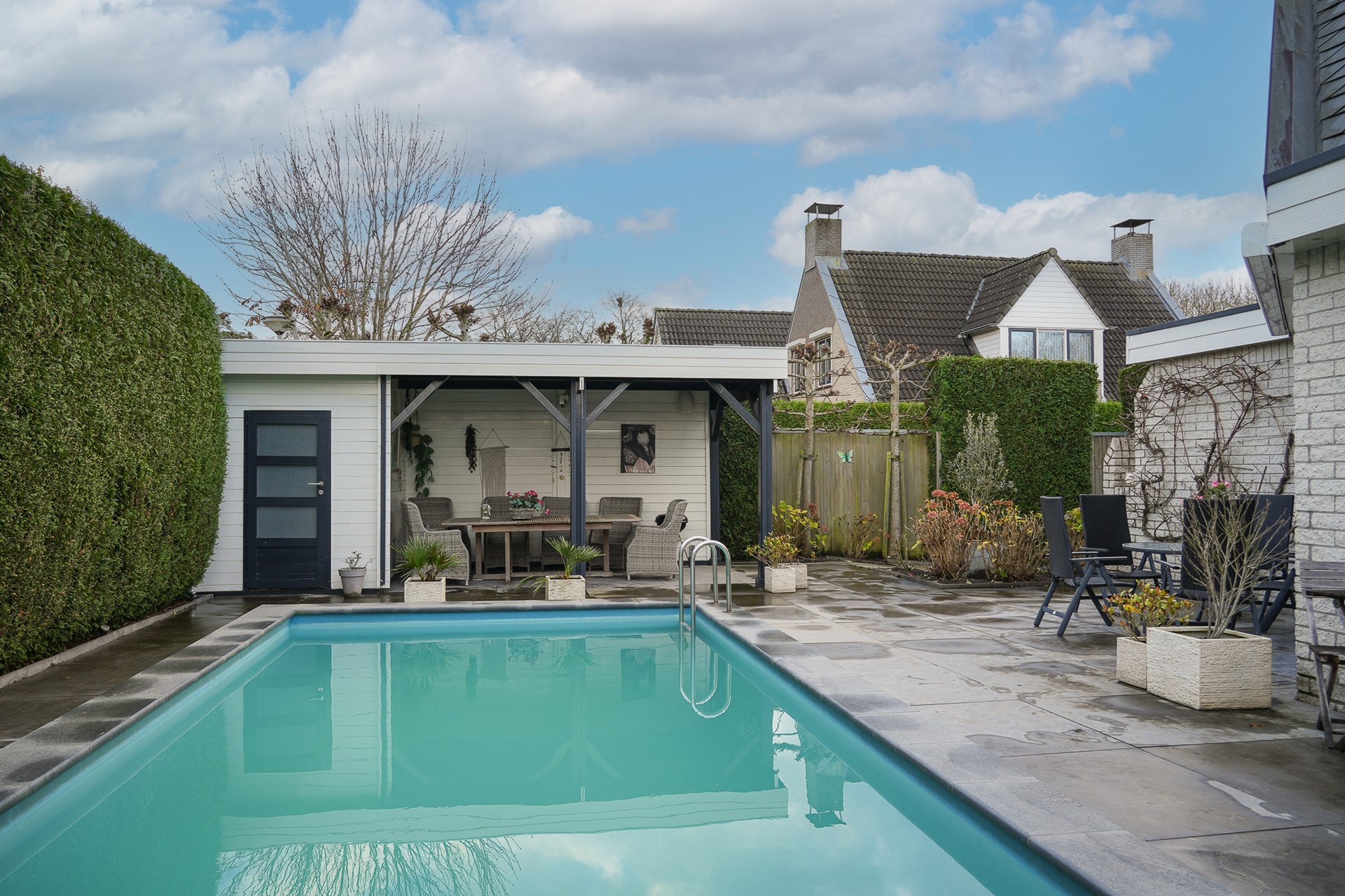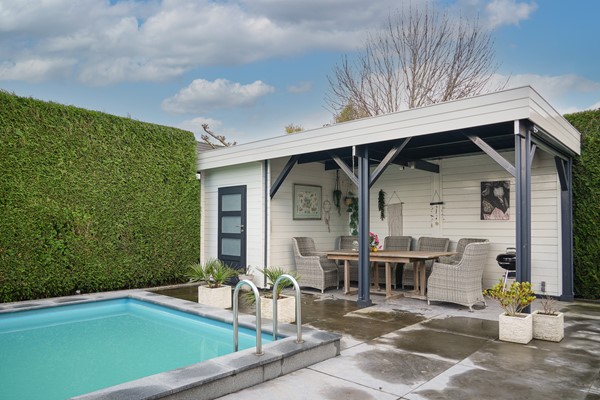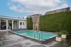 Achter de woning ligt een besloten tuin met verwarmd zwembad en een veranda waar je in alle rust én privacy kunt genieten.