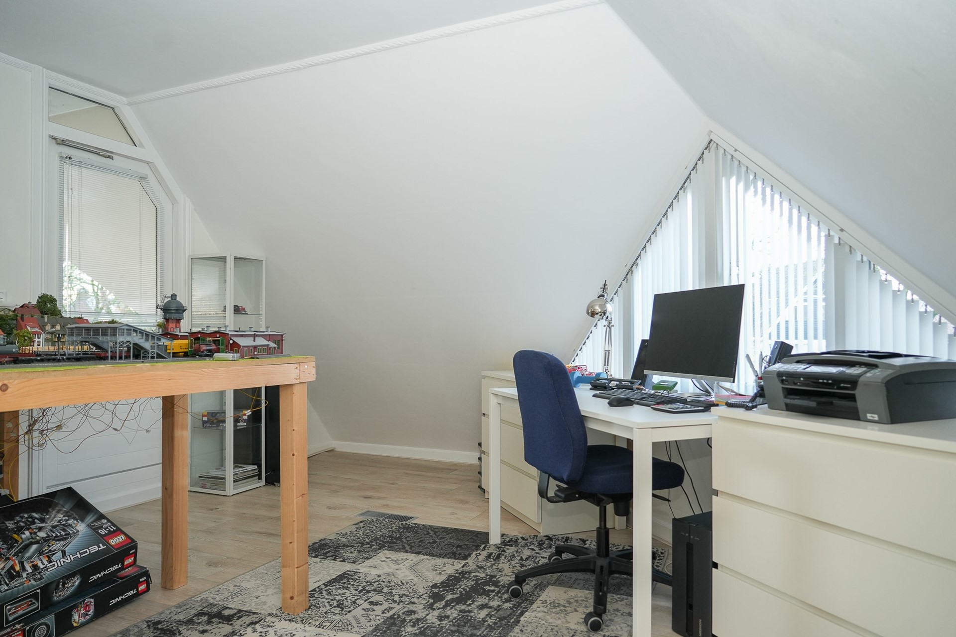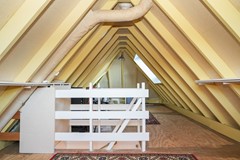 Via een vlizotrap bereik je een ruime bergzolder over de gehele lengte van het huis. Ideaal voor koffers, seizoensspullen of archief.