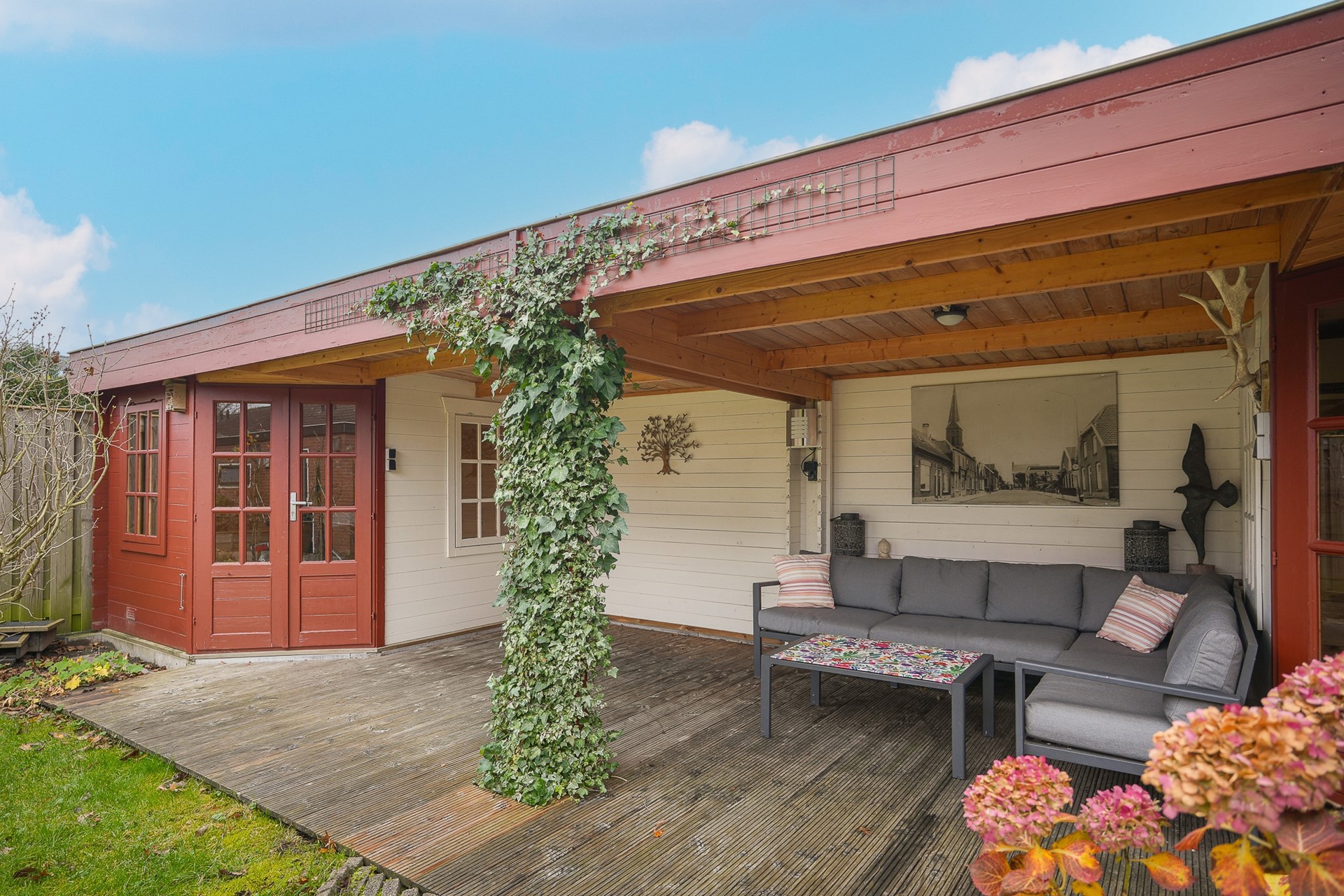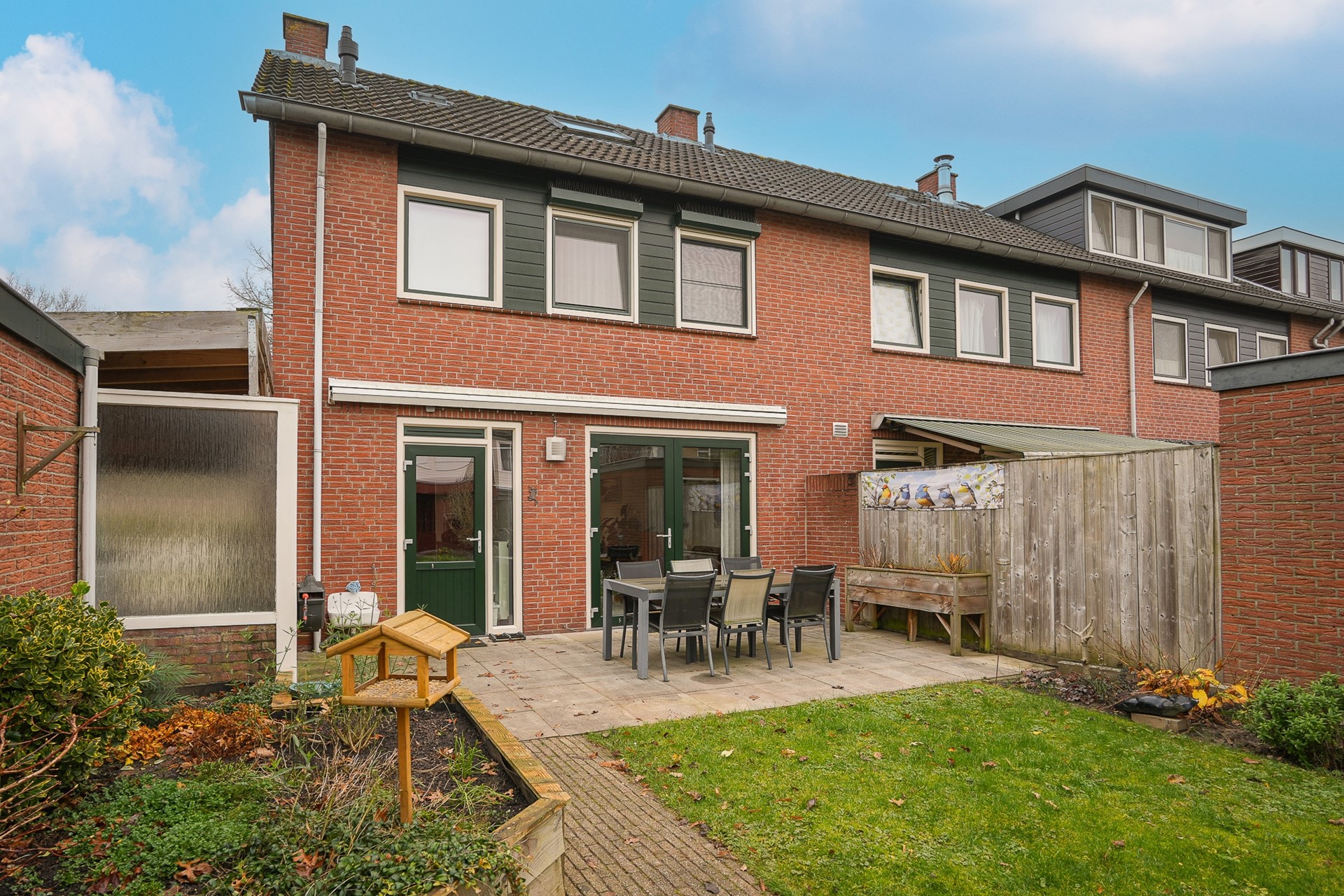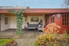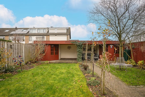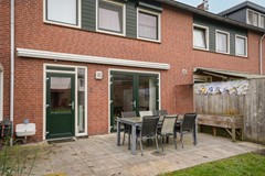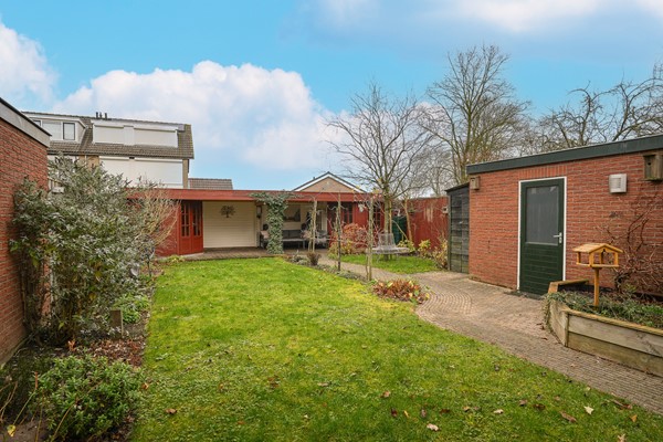 De achtertuin is zonder twijfel één van de parels van de woning: diep, groen en royaal van opzet. Je vindt hier meerdere zitplekken, een groot terras direct achter de woning en achterin een sfeervolle overkapping met twee bergingen. Dit is zo'n plek waar je zowel in de zomer als in het voor- en najaar graag zit om te lezen, te borrelen of gewoon te genieten van de rust.