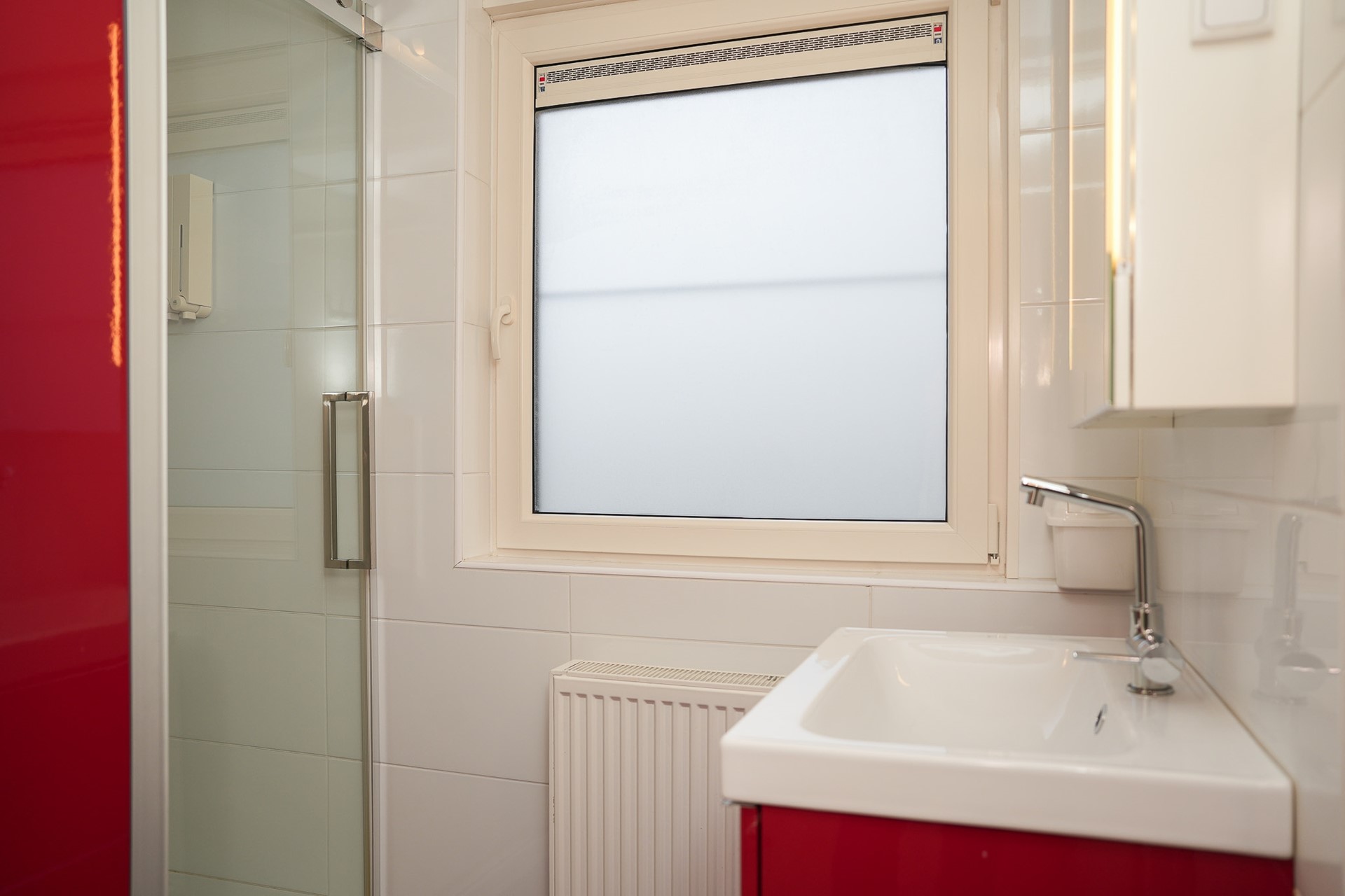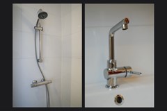 De badkamer (vernieuwd in 2015) is compact maar stijlvol ingericht met een douche, wastafelmeubel en radiator. Op de overloop bevindt zich een separaat tweede toilet, erg praktisch in het dagelijks gebruik.