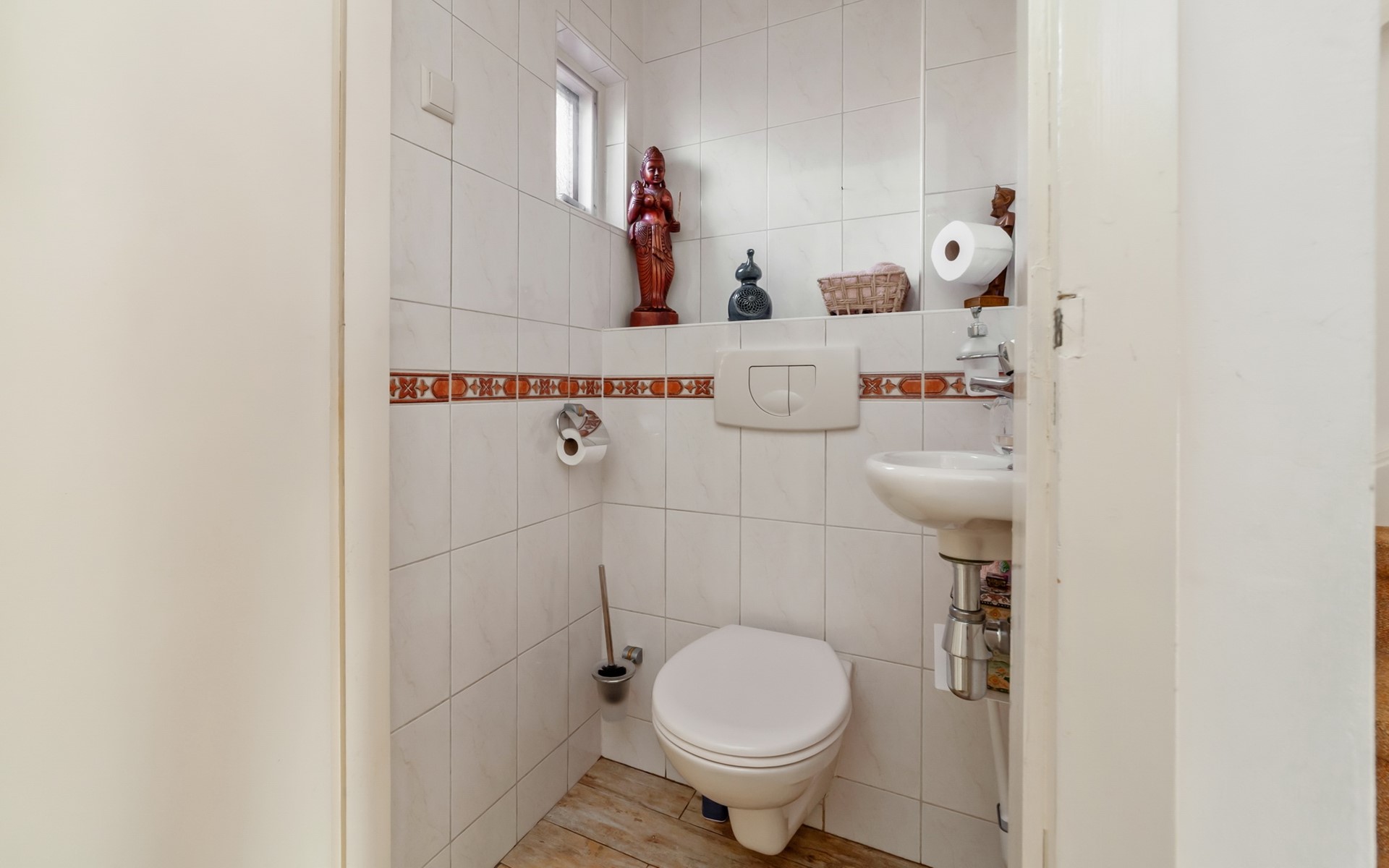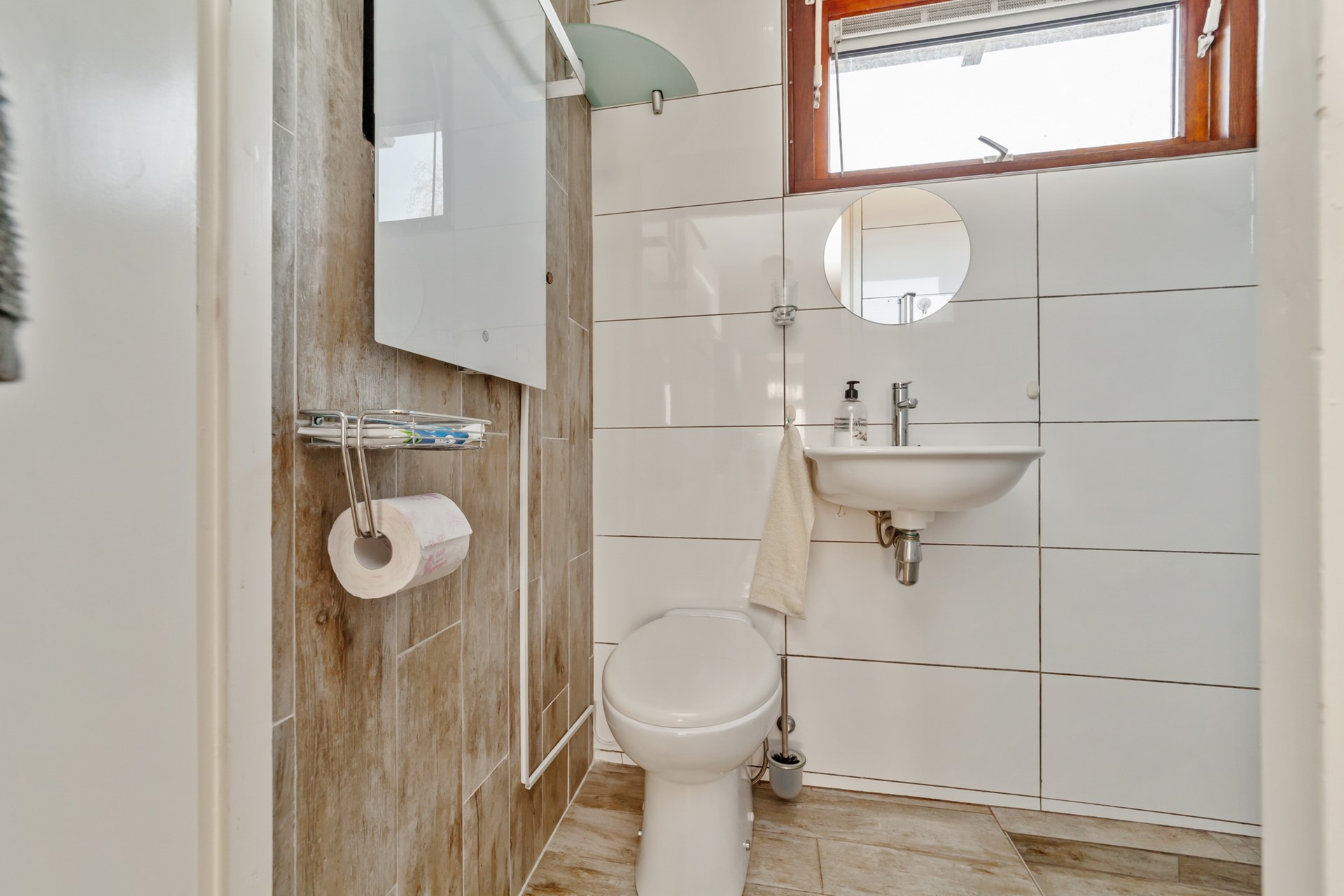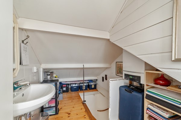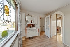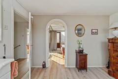 Via de ruime voortuin bereik je de entree van de woning. In de hal bevinden zich het toilet en een praktische kast met de opstelling voor de wasmachine en droger.