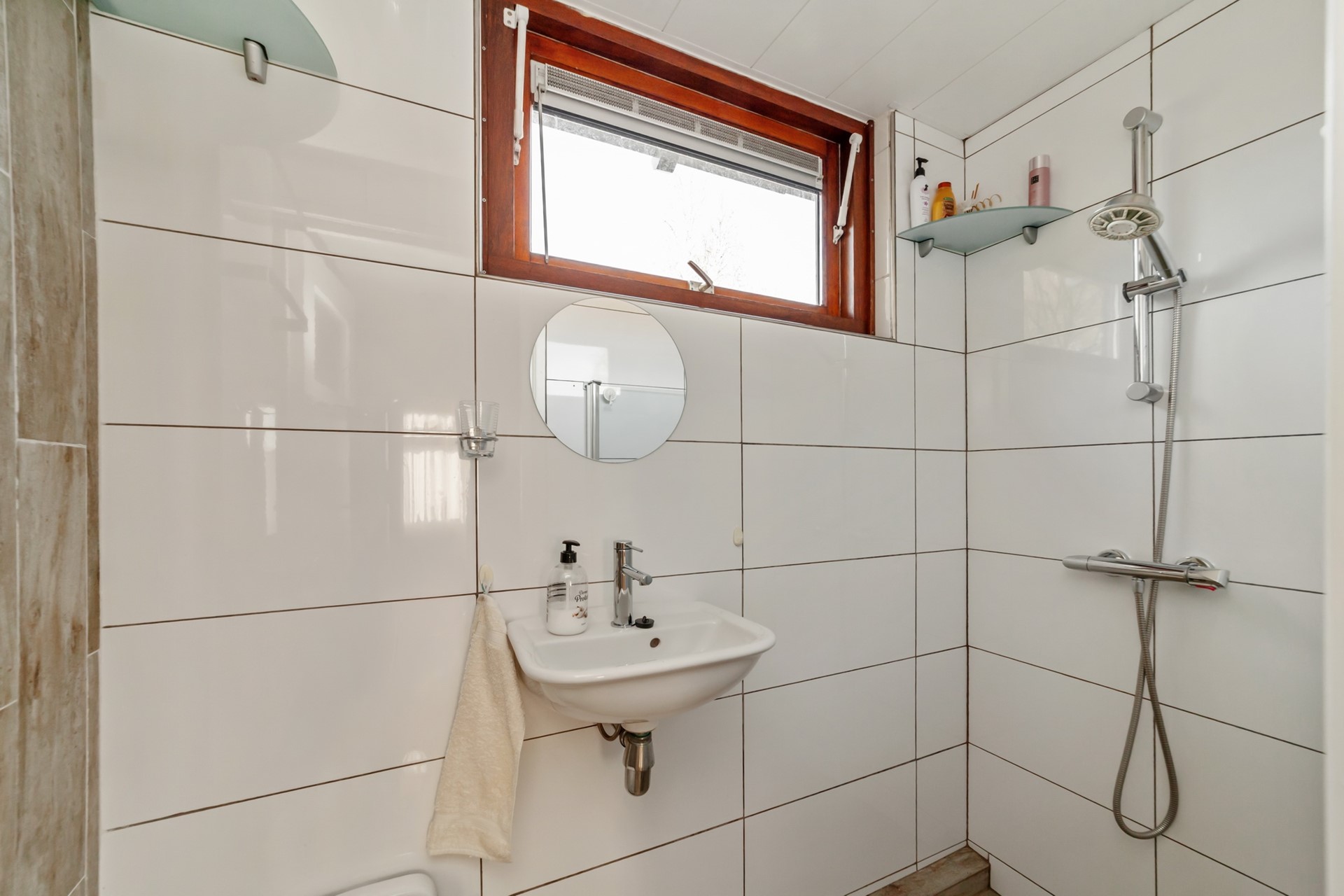 Verder is er een eenvoudige badkamer met douche en toilet.
