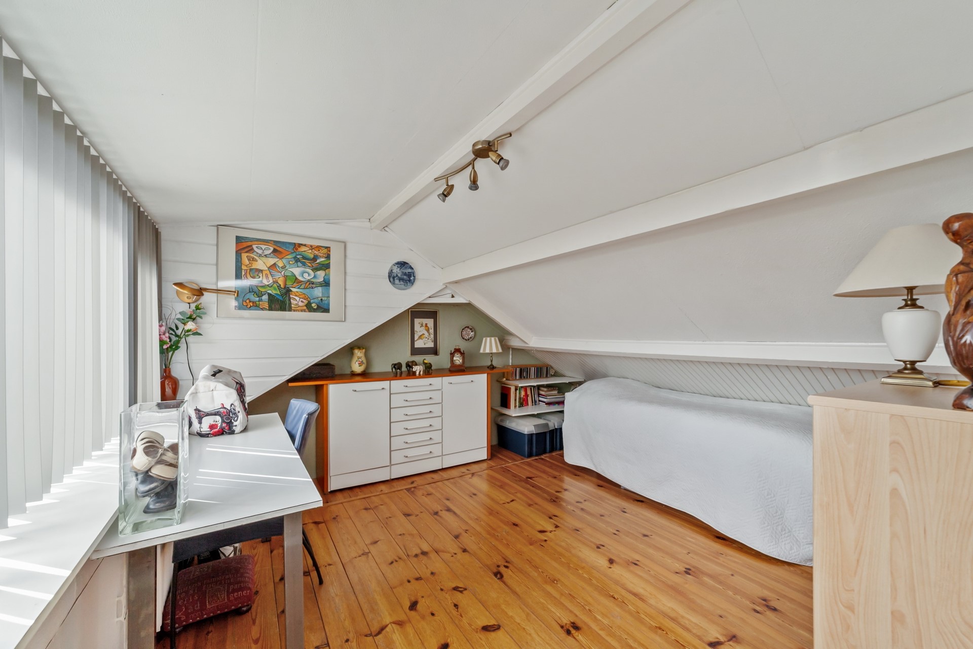 Deze gehele verdieping is voorzien van een houten vloer.