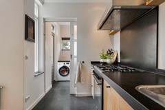 Grenzend aan de keuken is de bijkeuken: een praktische ruimte waar de wasmachine en droger kunnen worden opgesteld en de CV ketel hangt (Nefit HR).
