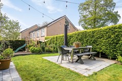 De tuin, gesitueerd op het zuidwesten, is een heerlijke plek en biedt alles wat je maar kunt wensen. Prachtig aangelegd met sierbestrating, een gazon en groene borders, is dit de ideale plek om te ontspannen en tot rust te komen. Voor kinderen is er achterin de tuin een speelgedeelte waar ze zich kunnen uitleven en plezier kunnen maken.