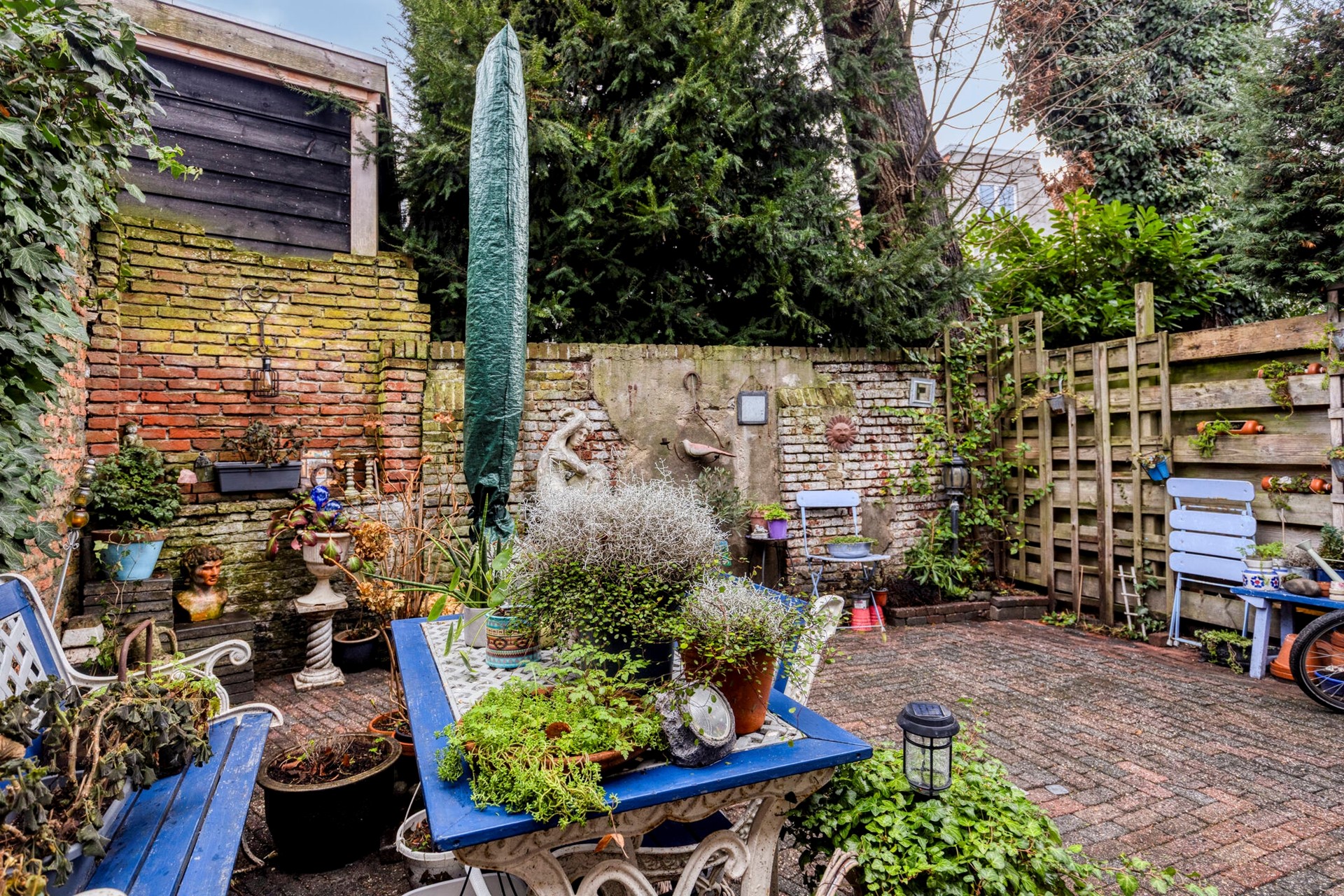 De heerlijke stadstuin is op het zuiden gelegen. Een royale tuin-set en barbecue kun je hier makkelijk kwijt. Praktisch is de vaste kast, waar de nodige tuingereedschap in kan worden opgeborgen. De tuin, met sierbestrating en een aantal vaste planten, kun je met een aantal gezellige bloempotten helemaal op fleuren de komende zomer.