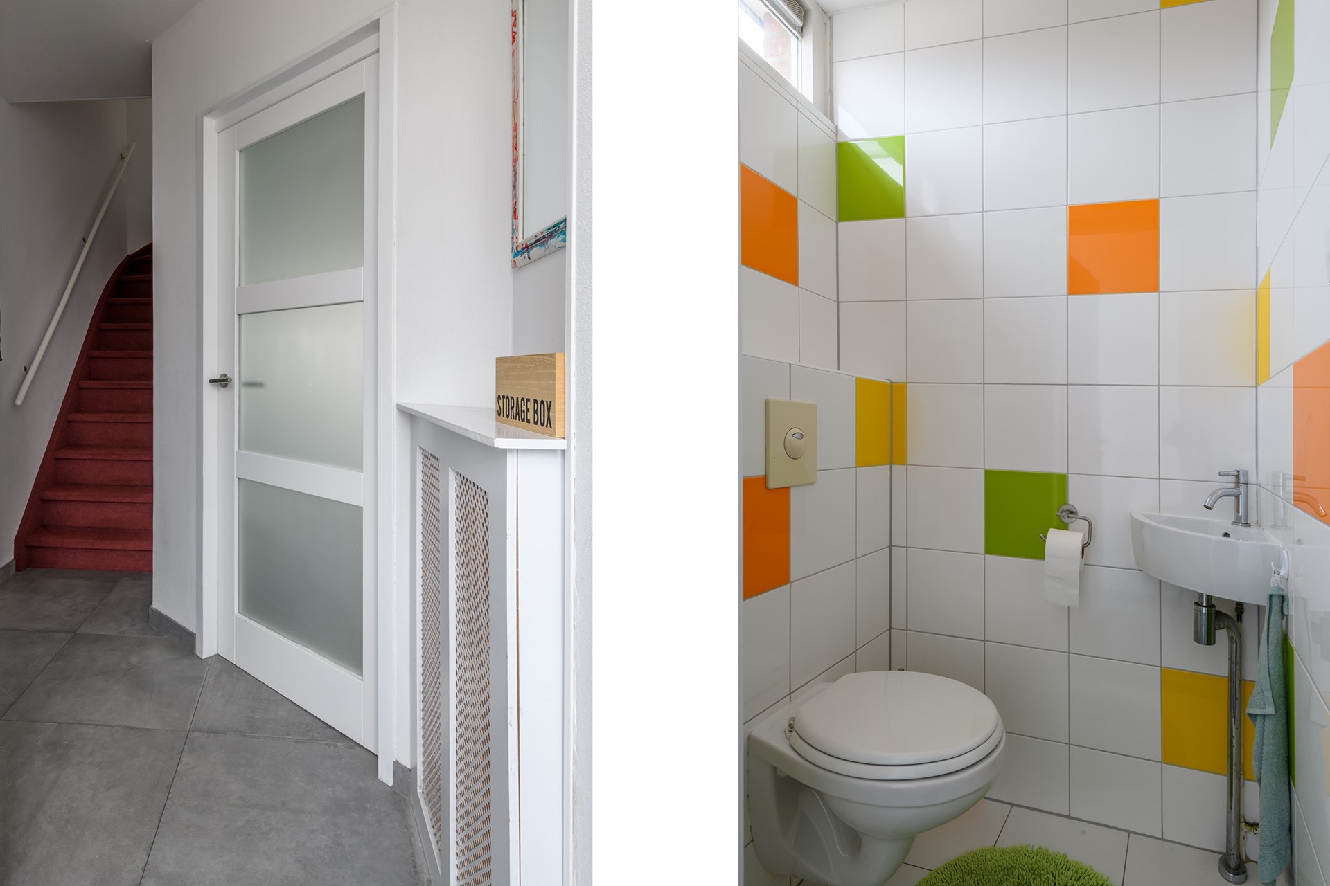 Op de begane grond komt u binnen in de hal met toilet en vernieuwde meterkast (2021).