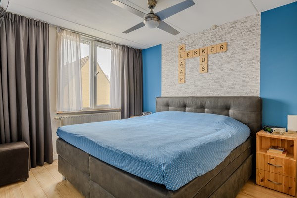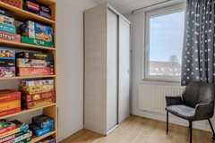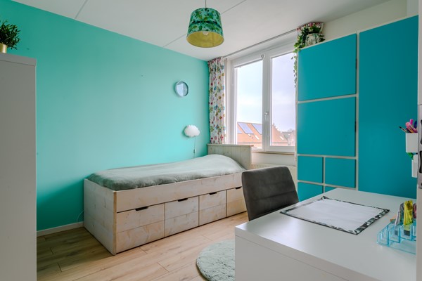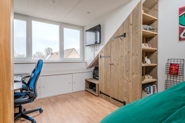 De zolderverdieping is bereikbaar via een dichte vaste trap. Door de grote dakkapel met rolluiken is er op deze verdieping een lichte en royale vierde slaapkamer gecreëerd met extra opbergruimte. Op de voorzolder is er bergruimte, een mogelijke werkplek en plaats voor de wasmachine, de droger en de CV -installatie. Ook hangt hier de airco, op een strategische plek, zodat ook de eerste verdieping op de warme dagen gekoeld wordt.