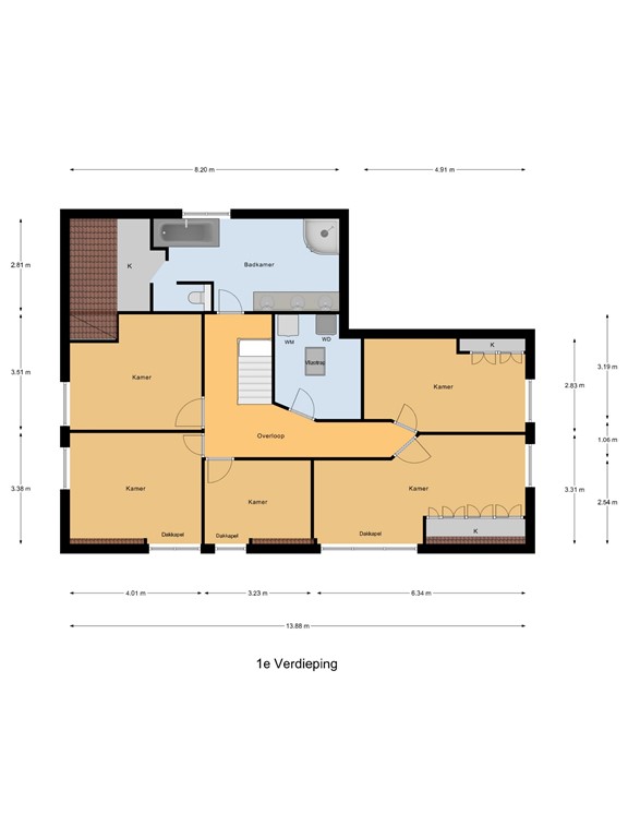 First floor: The landing provides access to no fewer than five spacious bedrooms, a large bathroom, and a laundry room. Above the former hall is a huge attic storage space.
