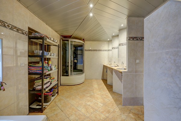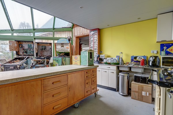 Behind the house is a high-quality detached outbuilding of approximately 133 m². This building is entirely on one level and offers a wealth of additional space. Imagine a spacious workshop, a private gym, an impressive man cave, or simply luxurious storage space. The building features a generous hall, a bright L-shaped room with a fireplace and large doors leading to the garden, several additional rooms, and a spacious attic for storage.