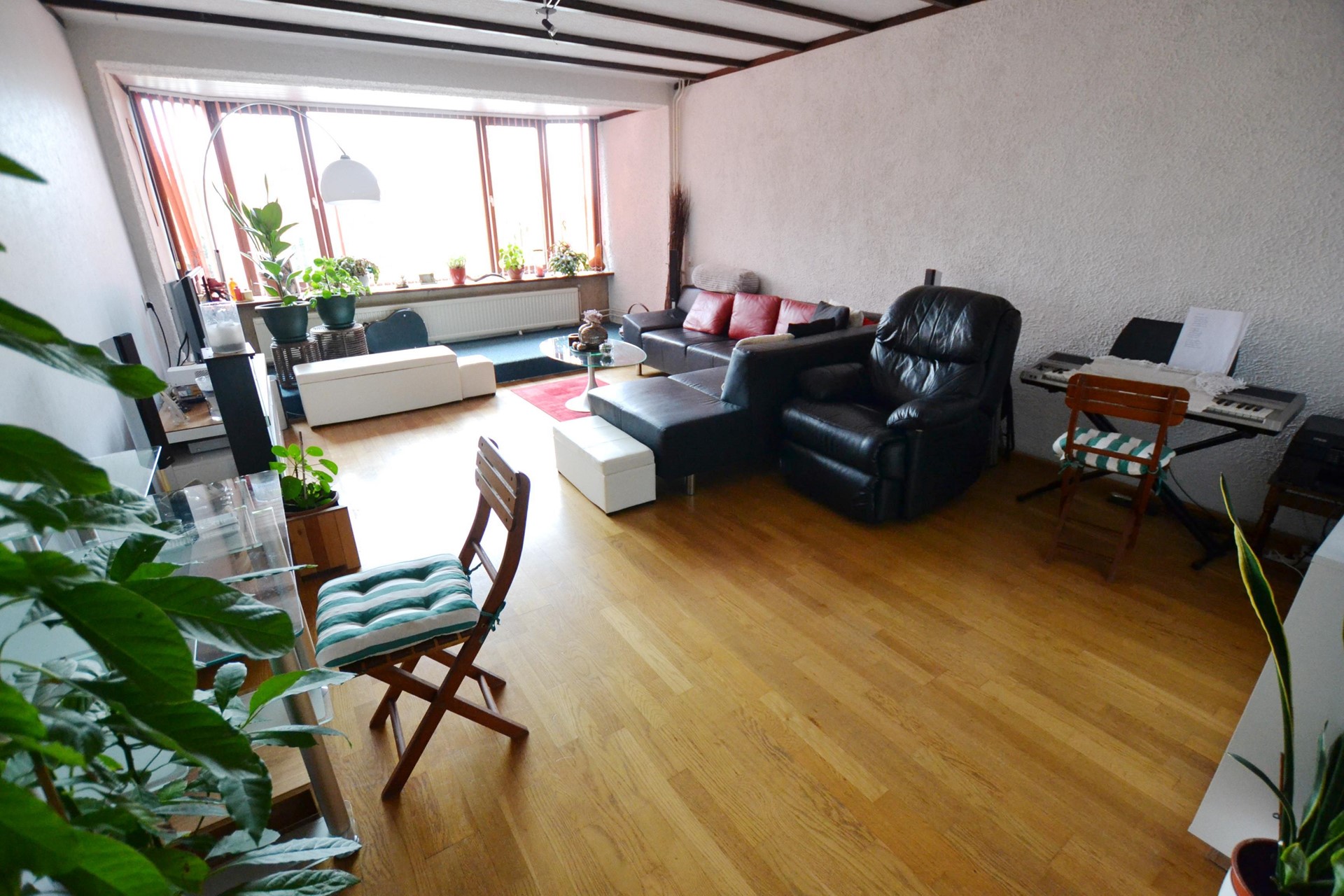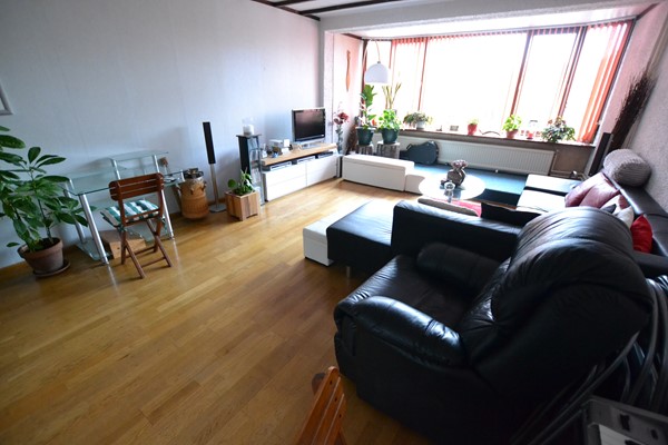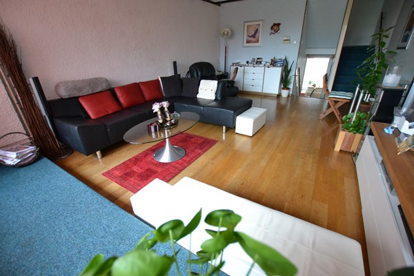Woonkamer 6,85 x 4,35 met laminaatvloer.