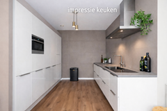 Keuken direct aan de woonkamer en ruime eetkamer aan de andere zijde