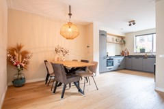 Zodra je binnenkomt, merk je het verschil. De uitbouw op de begane grond zorgt voor twee royale leefruimtes: een gezellige woonkamer én een woonkeuken waar je met gemak een grote eettafel kwijt kunt. De stalen deuren geven karakter en zorgen voor een fijne verbinding tussen de ruimtes. En dankzij de nieuwe schuifpui loopt de tuin naadloos over in de woonkamer—een plek waar je ’s zomers heerlijk buiten leeft.
