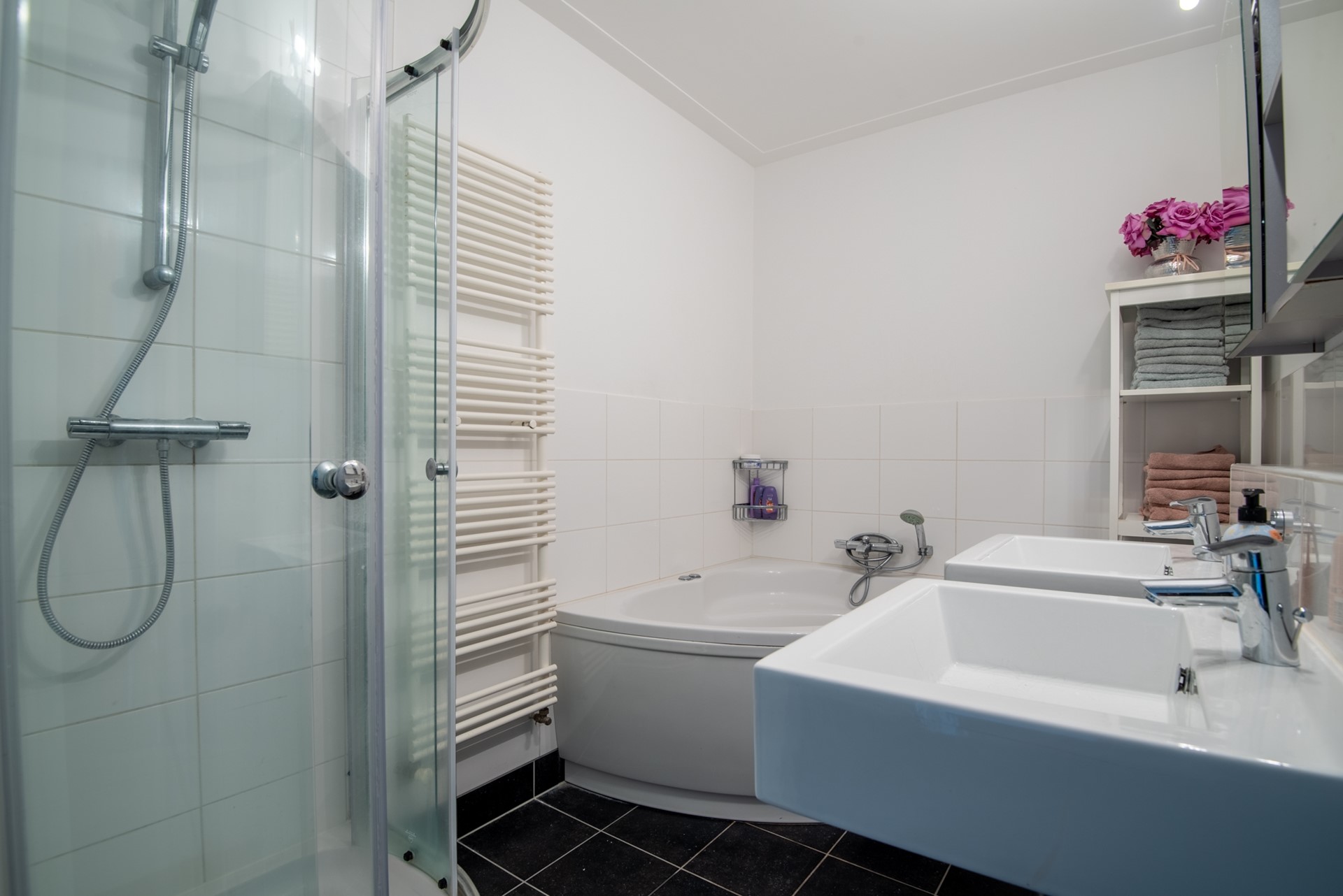 Op de eerste verdieping vind je drie ruime slaapkamers. De moderne badkamer is voorzien van een ligbad, dubbele wastafel en douche. Daarnaast is er een separaat toilet aanwezig, bereikbaar via de overloop.