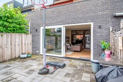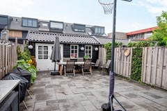 De woning beschikt over een ruime, onderhoudsvriendelijke achtertuin met veel bestrating, ideaal voor buitenactiviteiten en gezellig samenzijn. Aan de woningzijde zorgen grote schuifpuien voor een fijne verbinding tussen binnen en buiten. Achter in de tuin staat een praktische berging met dubbele deuren en ramen, perfect te gebruiken als opslagruimte of hobbyruimte.