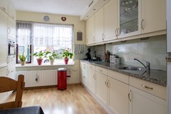 Entree/hal met meterkast, toilet en trapopgang. Vanuit de hal toegang tot de lichte woonkamer met aansluitend de open keuken aan de voorzijde, voorzien van diverse inbouwapparatuur. Aan de achterzijde bevindt zich een ruime serre die zorgt voor extra leefruimte en een prettige verbinding met buiten.