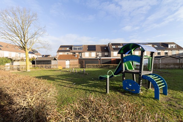 Ook buiten is dit een ideale plek voor gezinnen. De tuin ligt gunstig op het zuiden en biedt volop zon en ruimte om buiten te leven. Naast de stenen schuur aan de voorzijde beschikt de achtertuin over twee houten schuren, ideaal voor fietsen, speelgoed en alles wat je netjes wilt opbergen. Direct achter de woning ligt een speeltuin, waardoor kinderen veilig en dichtbij kunnen spelen. Daarnaast bevinden zich meerdere grote speeltuinen op korte afstand, wat deze locatie extra kindvriendelijk maakt.