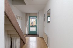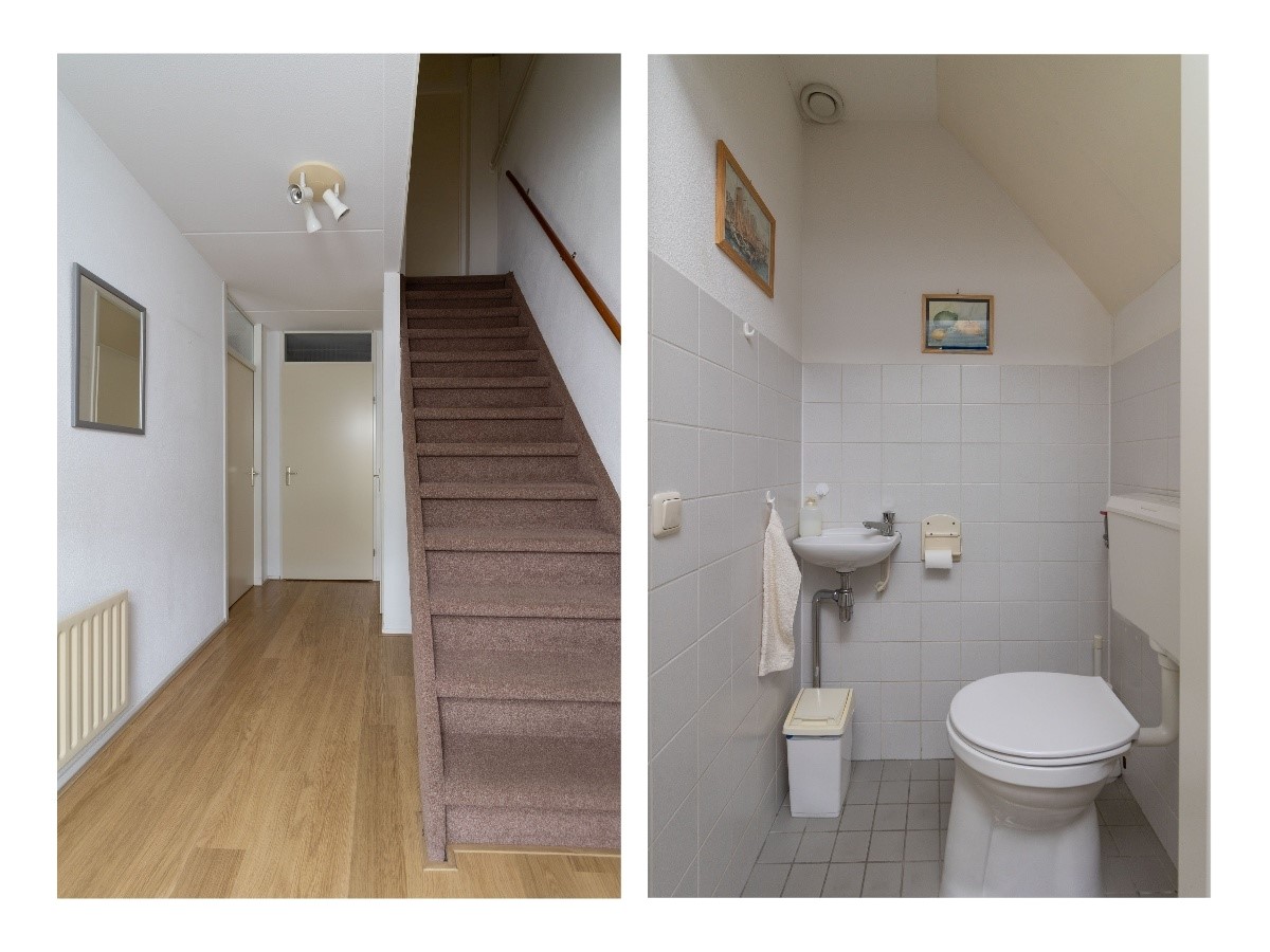 Via de entree/hal met meterkast en trapopgang bereikt u het separate toilet en de badkamer. Vanuit de hal is er toegang tot de ruime en lichte woonkamer, die in open verbinding staat met de keuken. De keuken is praktisch ingericht en biedt toegang tot de berging. Aansluitend bevindt zich de slaapkamer, gelegen aan de achterzijde van de woning.