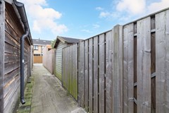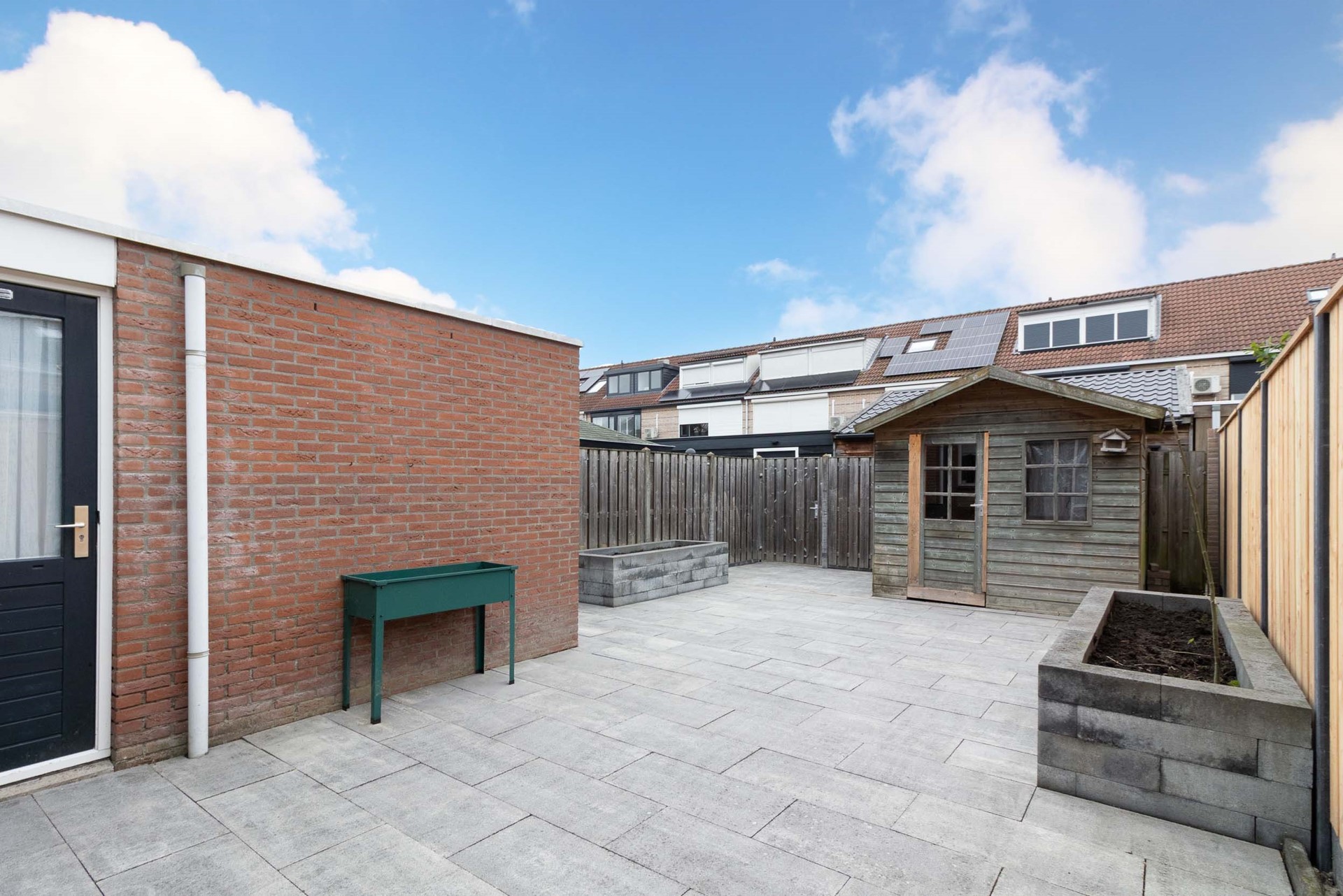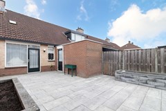 De verzorgde achtertuin is gelegen op het noorden en is onderhoudsvriendelijk aangelegd met een ruim terras, vaste plantenbakken en erfafscheidingen. Dankzij de open indeling is er voldoende ruimte voor een zit- en eethoek. Achterin de tuin bevindt zich een vrijstaande houten berging, ideaal voor het opbergen van fietsen en tuingereedschap. De tuin biedt veel privacy en is een fijne buitenruimte om het hele jaar door van te genieten.
