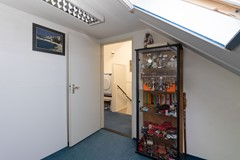 Op deze verdieping bevinden zich twee slaapkamers, waarvan 1 met dakkapel. Beide voorzien van daglicht en praktische indeling. Dankzij de schuine dakvlakken is de ruimte speels en sfeervol, terwijl de aanwezige knieschotten (vaste kasten) zorgen voor extra bergruimte.