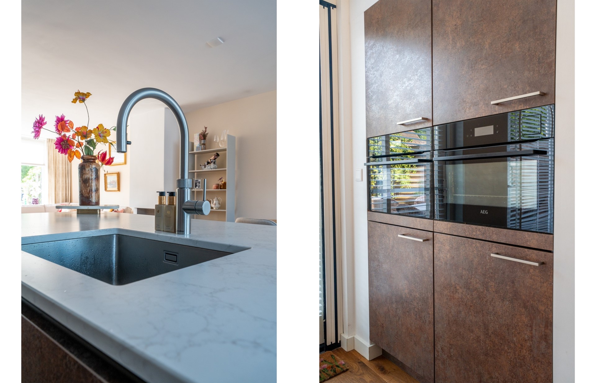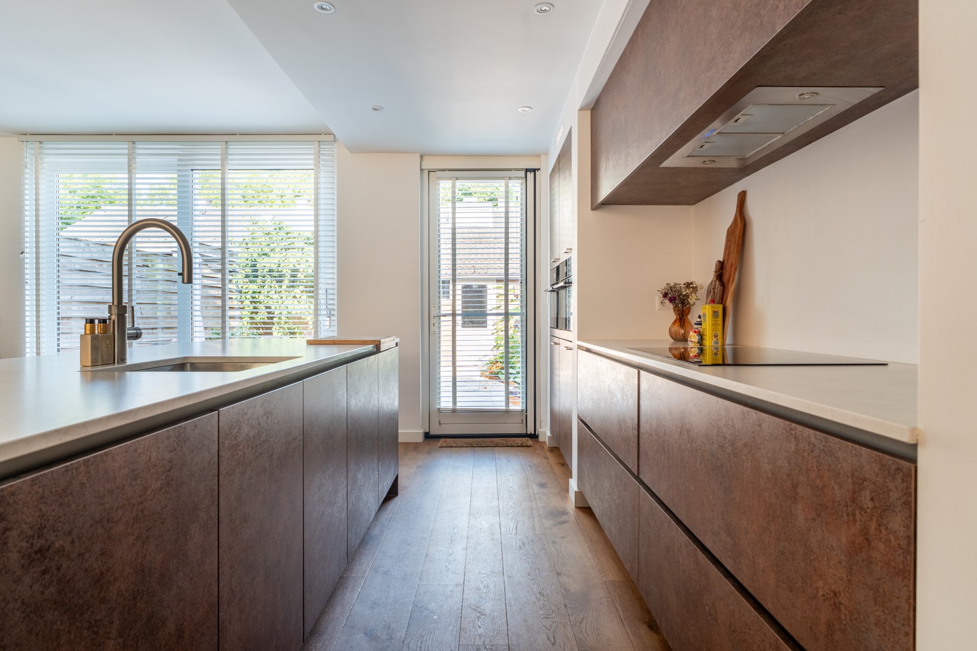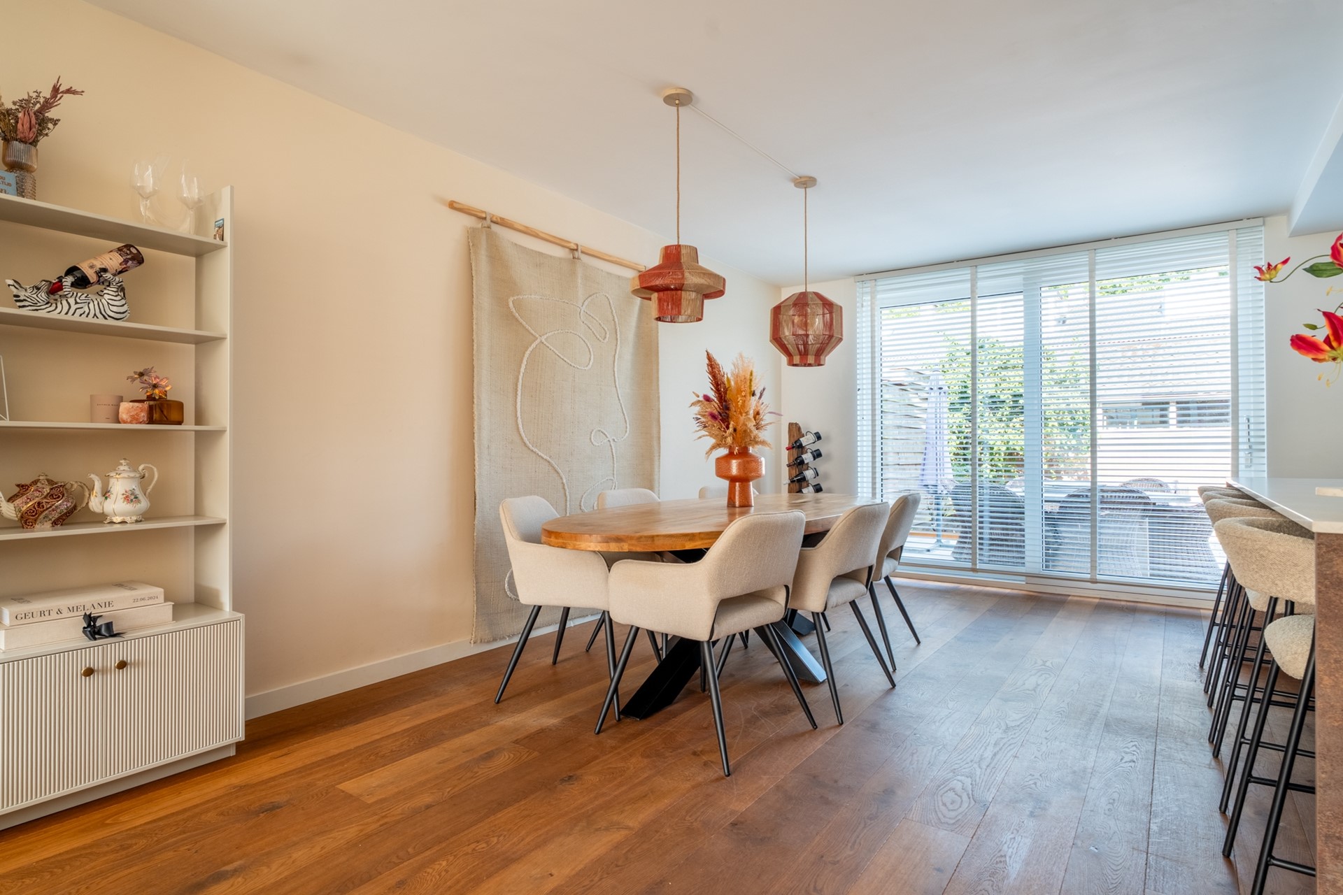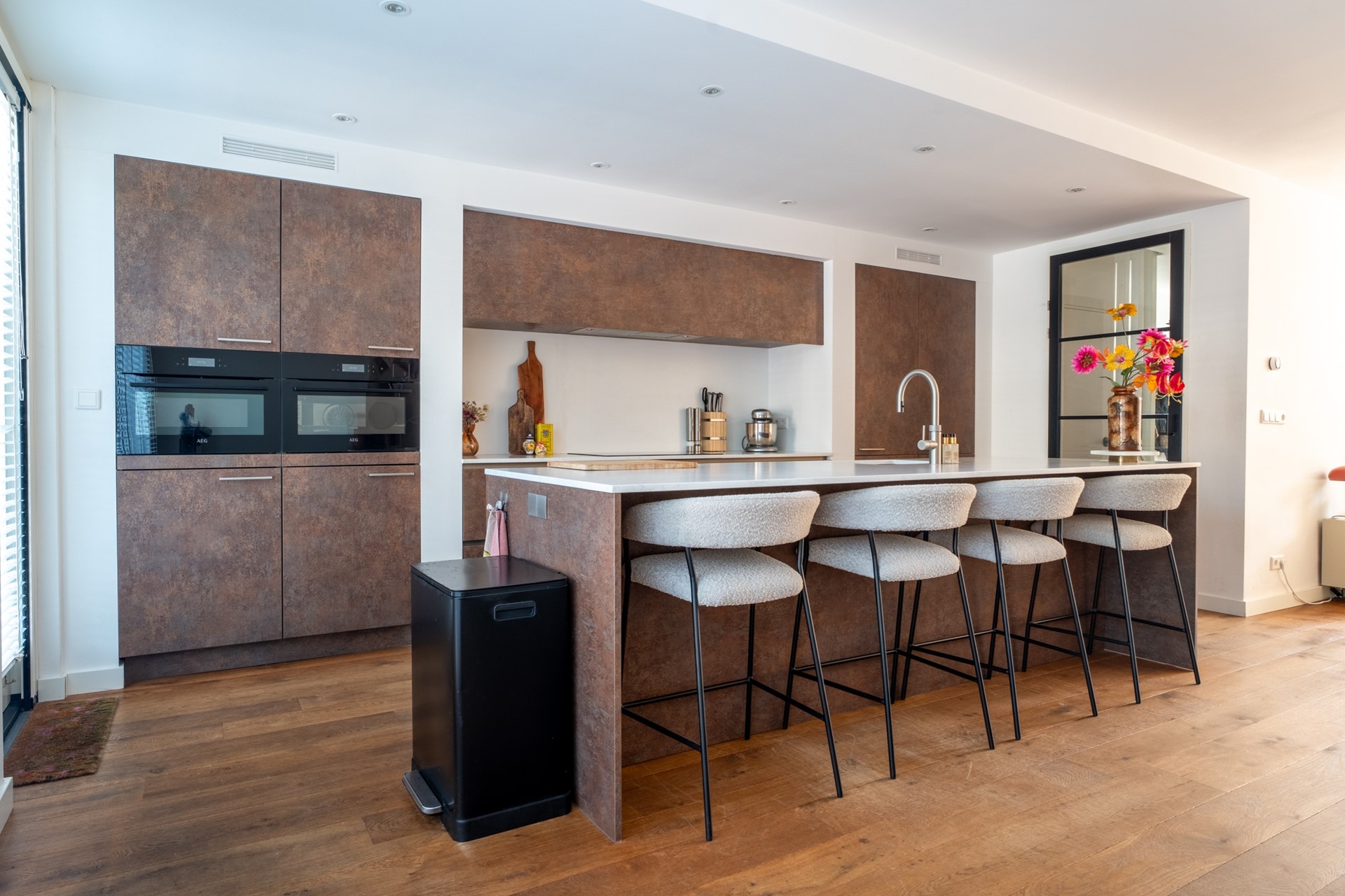 Door de royale breedte voelt het huis opvallend ruim en open aan. Bovendien is de indeling flink geoptimaliseerd. Op de begane grond vind je een lichte en praktische woonkamer met sfeervolle haard, ideaal voor gezellige avonden. De keuken vormt het hart van de woning, uitgevoerd met een modern kookeiland en volop ruimte voor een grote eettafel. Een plek waar koken, samenzijn en genieten naadloos samenkomen.