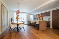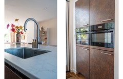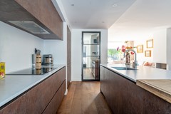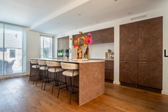 Via de entree met garderobe, meterkast, trapopgang en separaat toilet bereik je de royale leefruimte. De woonkamer en eetkamer vormen samen een open en lichte ruimte, ideaal voor een comfortabele zithoek en een grote eettafel. Aan de achterzijde bevindt zich de moderne keuken met spoeleiland en veel bergruimte, die direct in verbinding staat met de eetkamer.