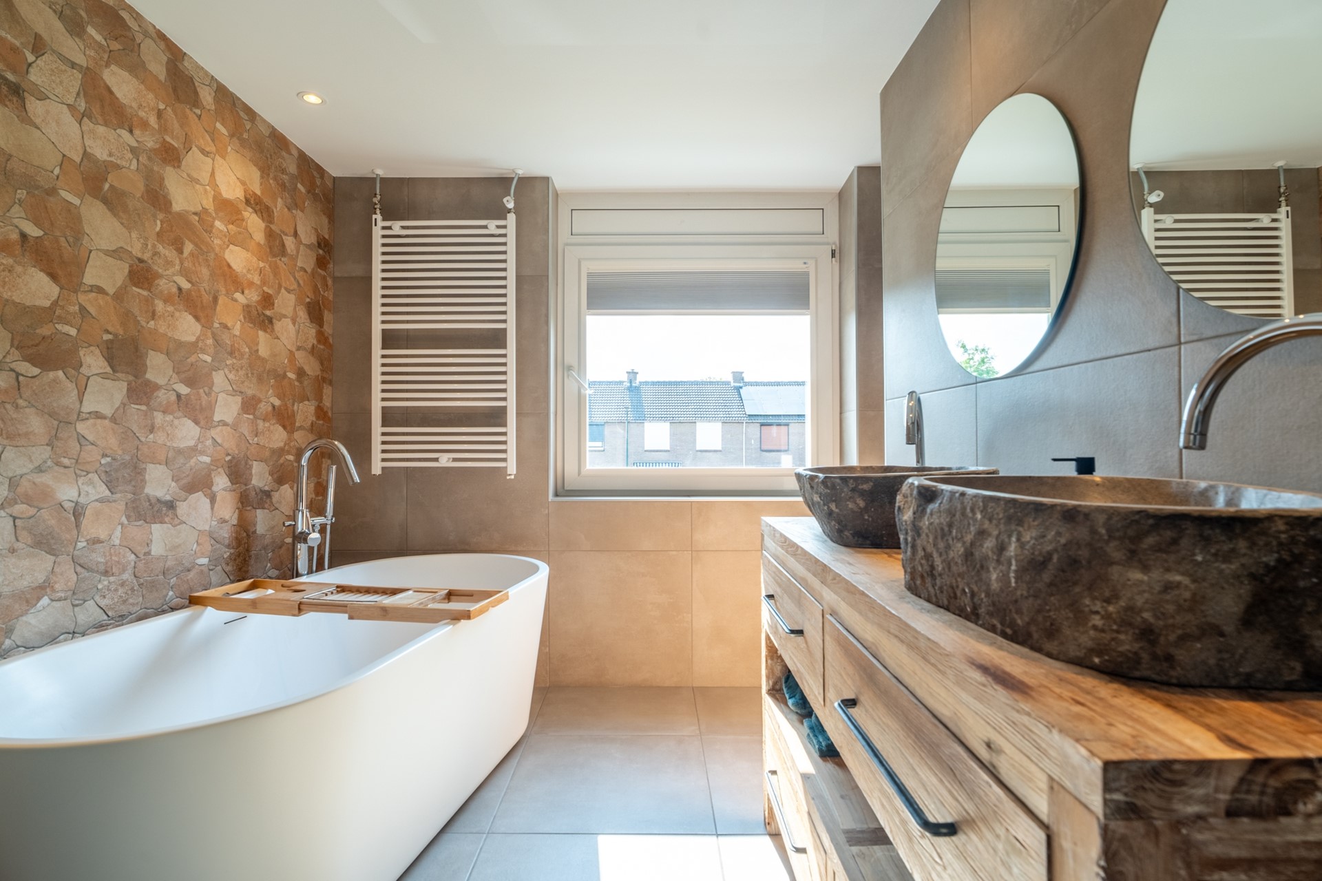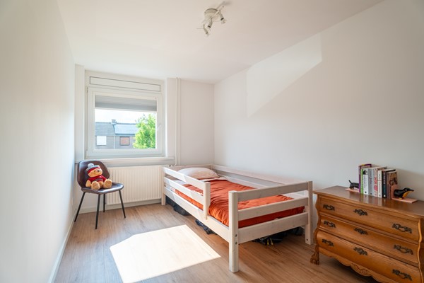 De overloop geeft toegang tot drie ruime slaapkamers, waarvan één is voorzien van een praktische inbouwkast. Verder tref je op deze verdieping een separaat toilet en een moderne badkamer met dubbele wastafel en ligbad.