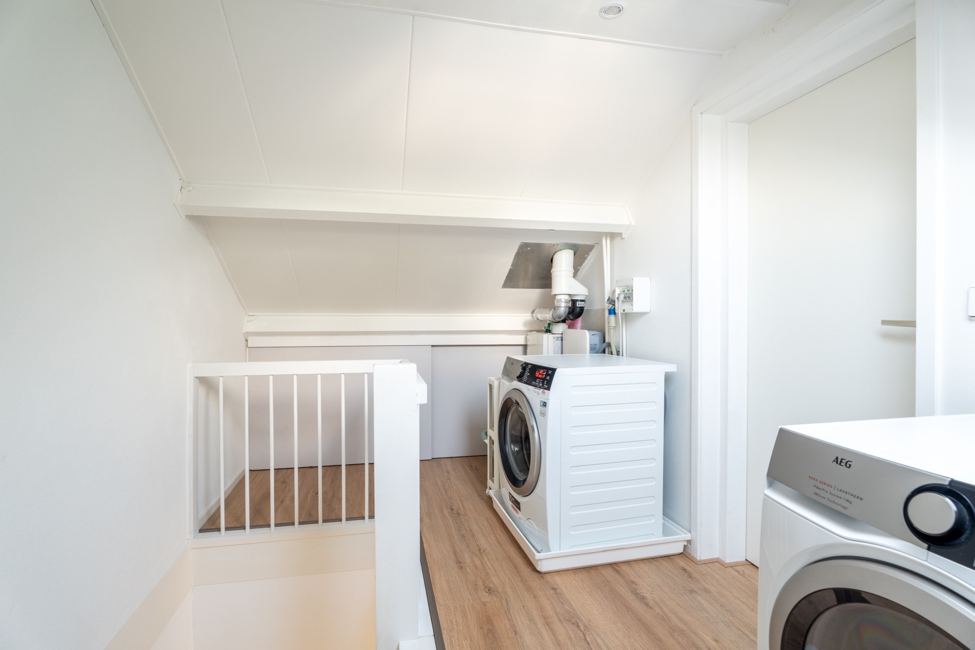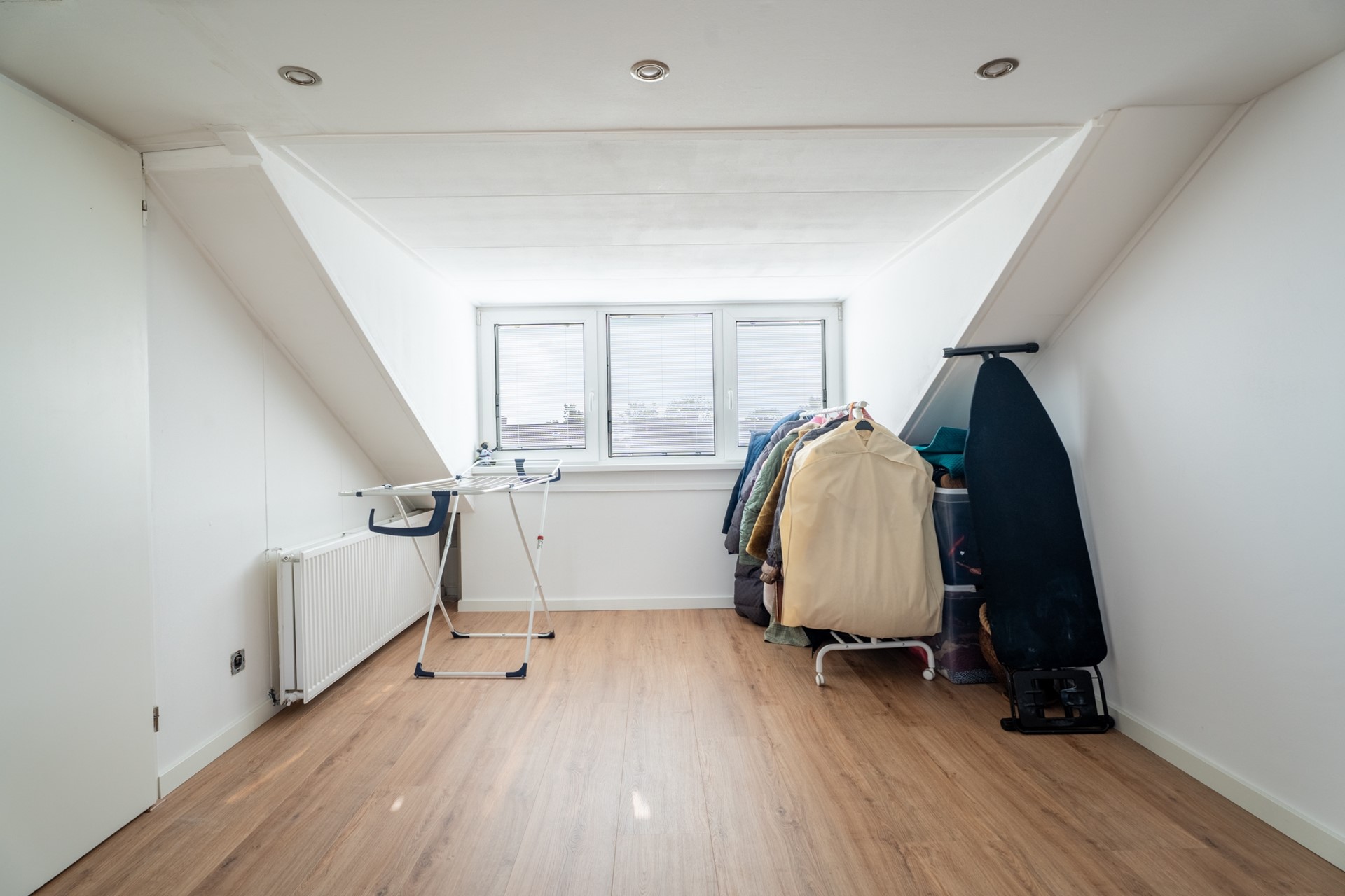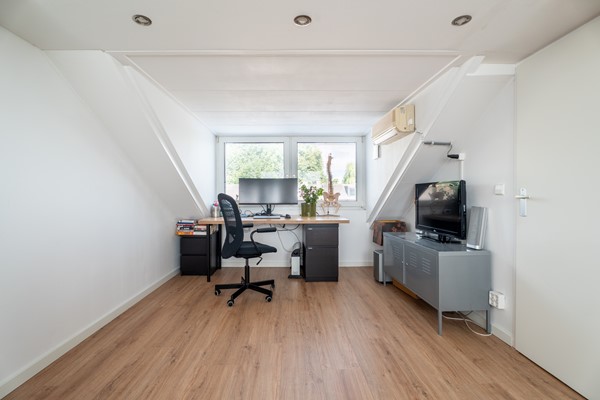 Via een vaste trap bereik je de zolderverdieping. Hier bevindt zich een royale slaapkamer met dakkapellen aan beide zijden, wat zorgt voor veel licht en extra ruimte. Daarnaast beschikt deze verdieping over twee ruime bergruimtes, ideaal voor het opbergen van spullen.