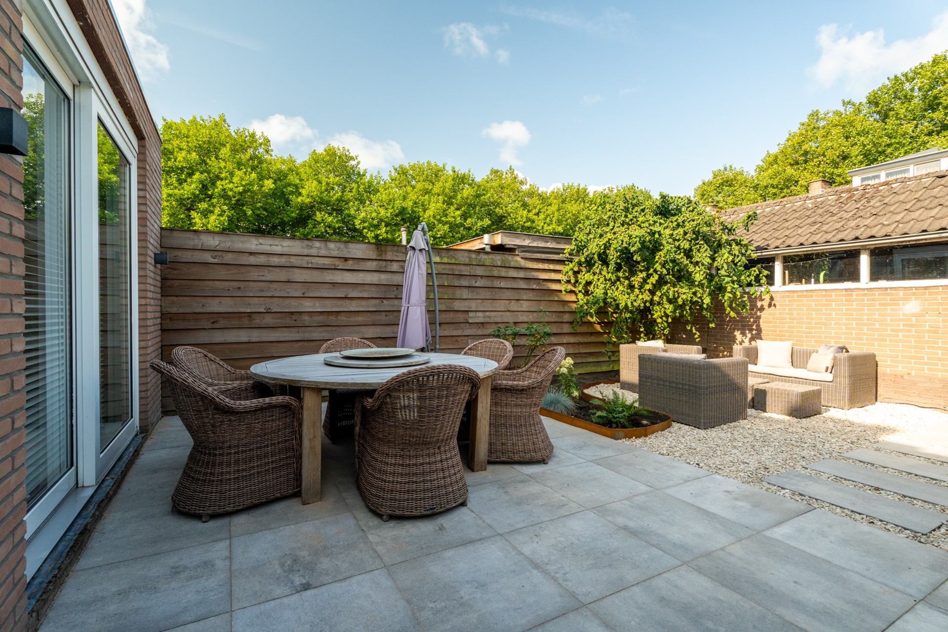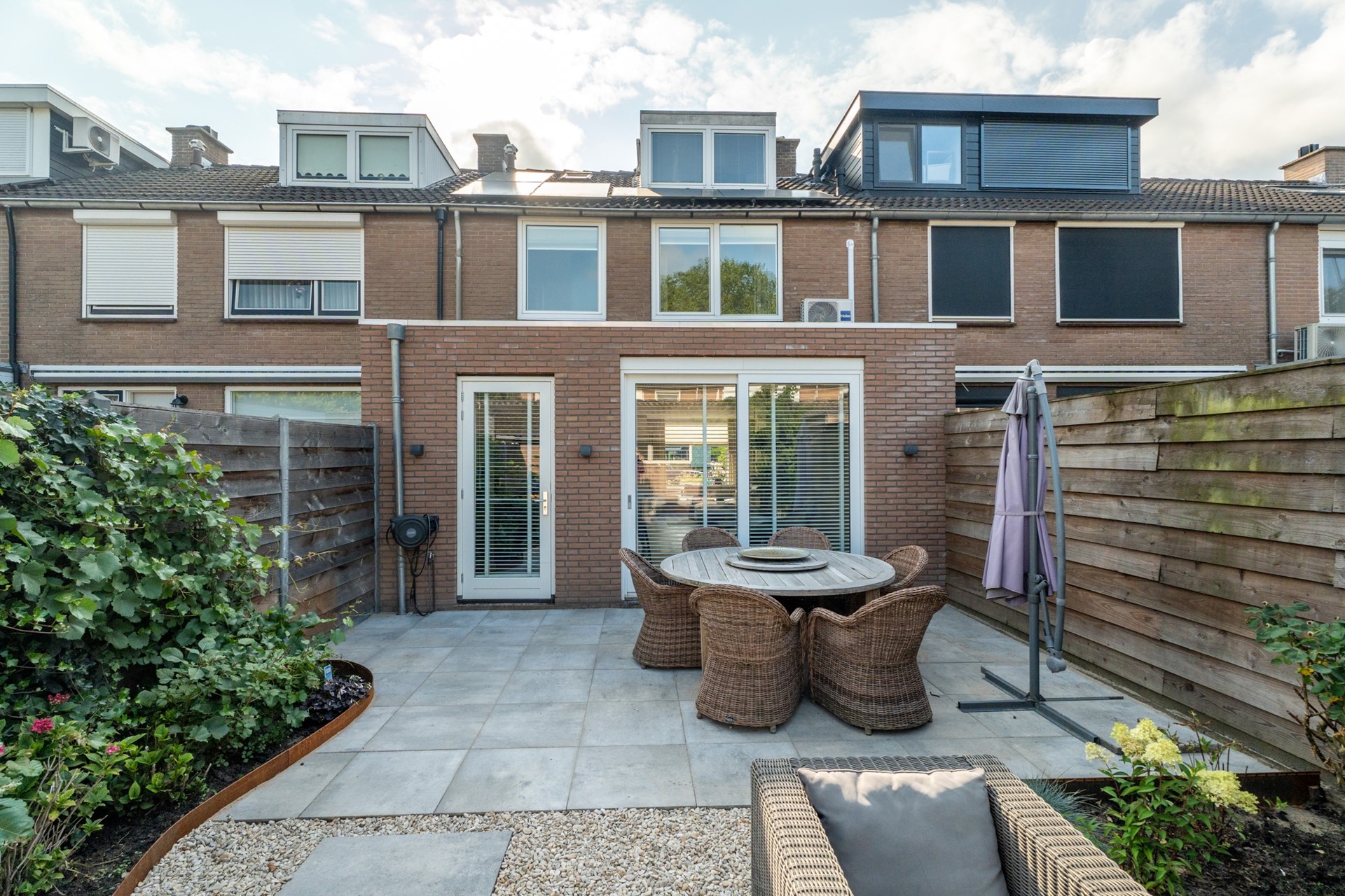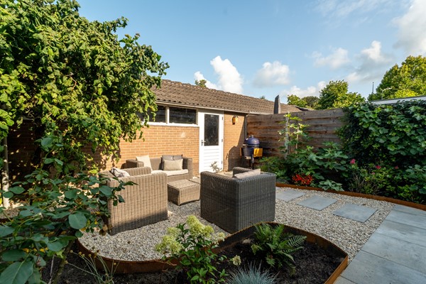 Niet alleen binnen, maar ook buiten is aan alles gedacht. De recent vernieuwde tuin ligt gunstig op het westen, waardoor je ’s middags en ’s avonds volop van de zon kunt genieten. Een fijne plek om te ontspannen of gasten te ontvangen.