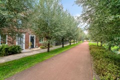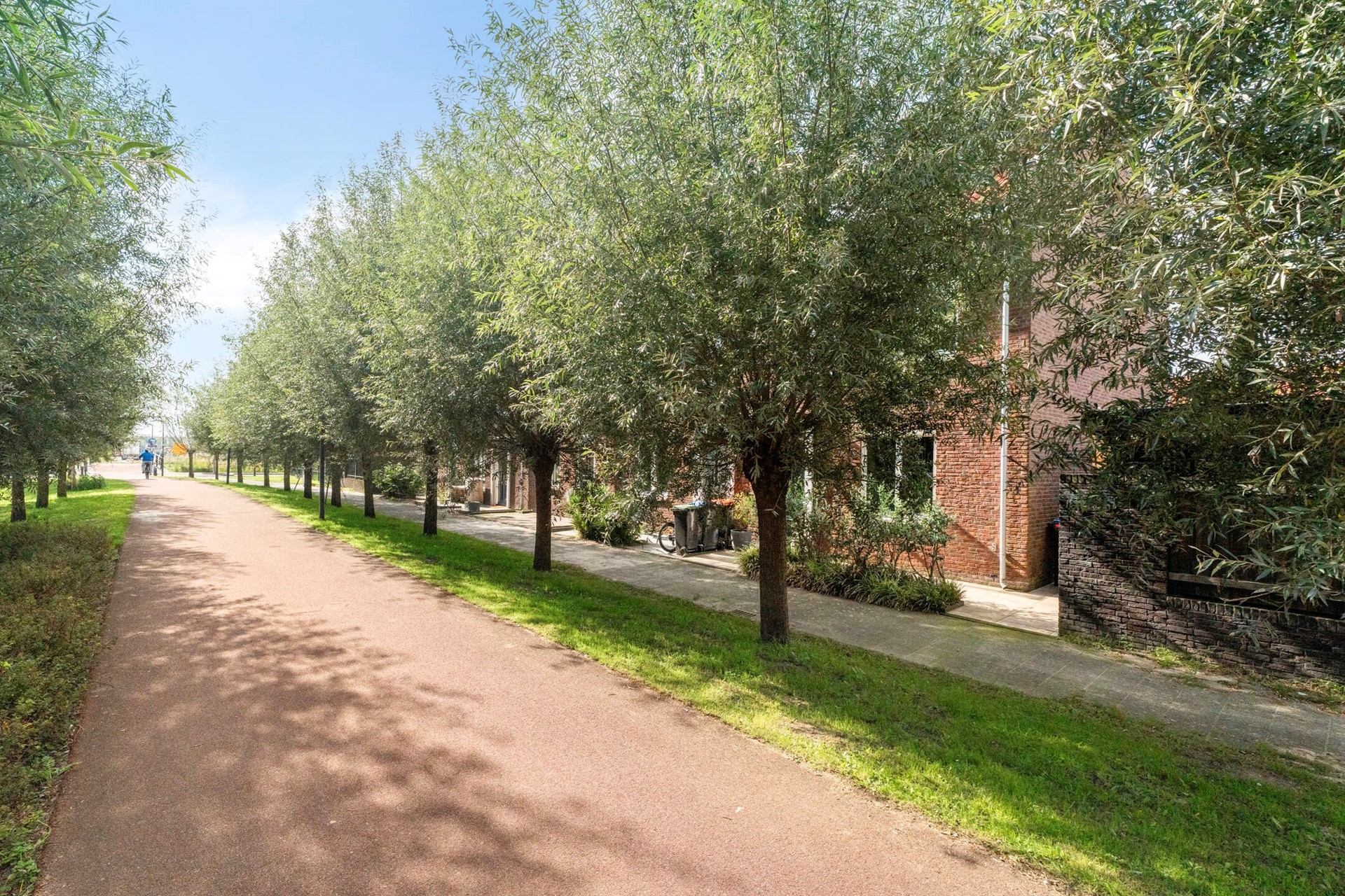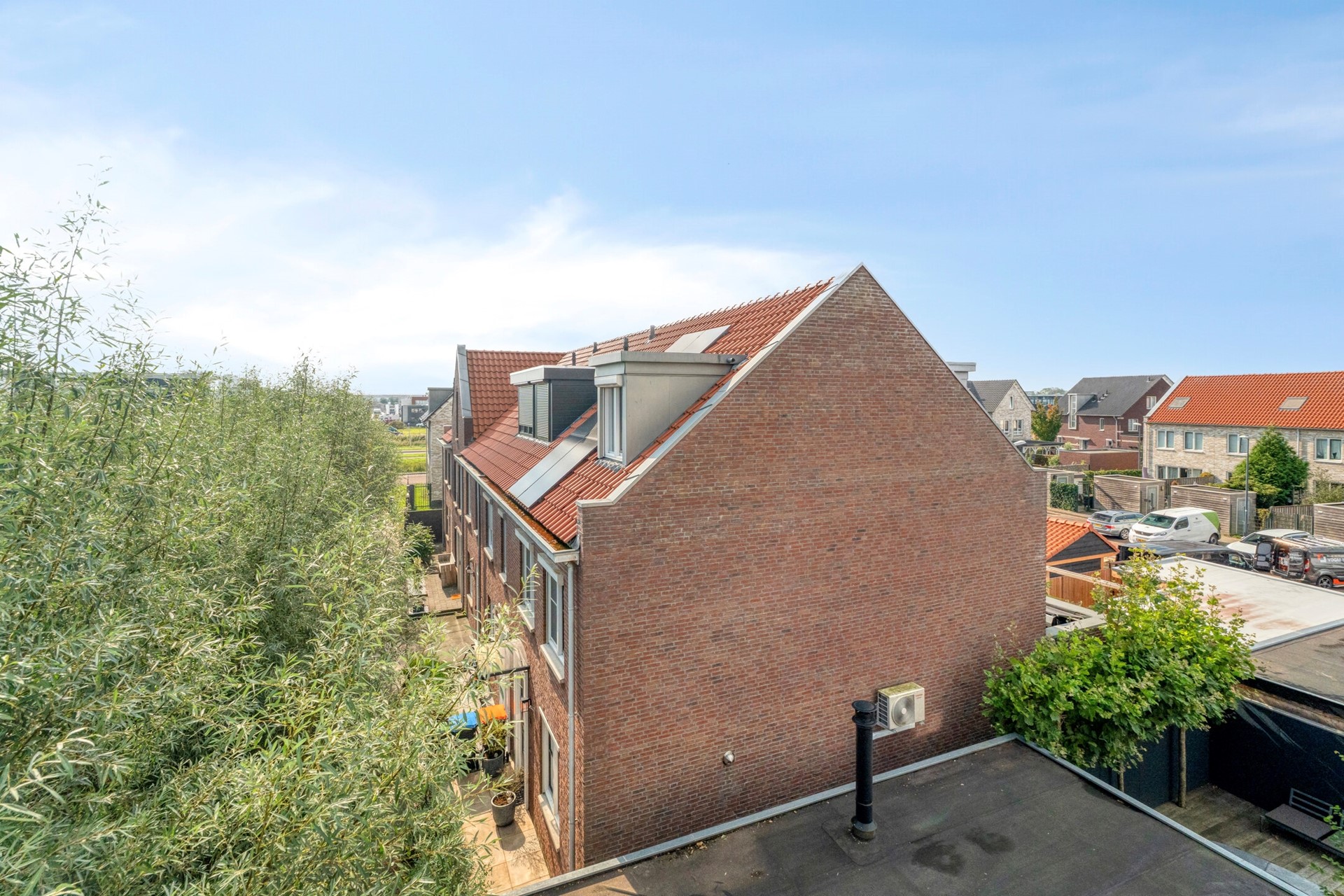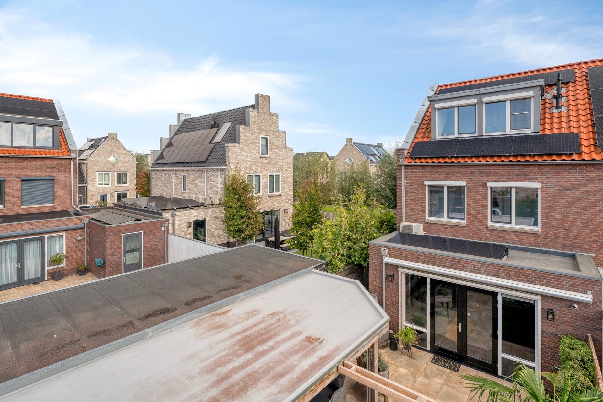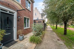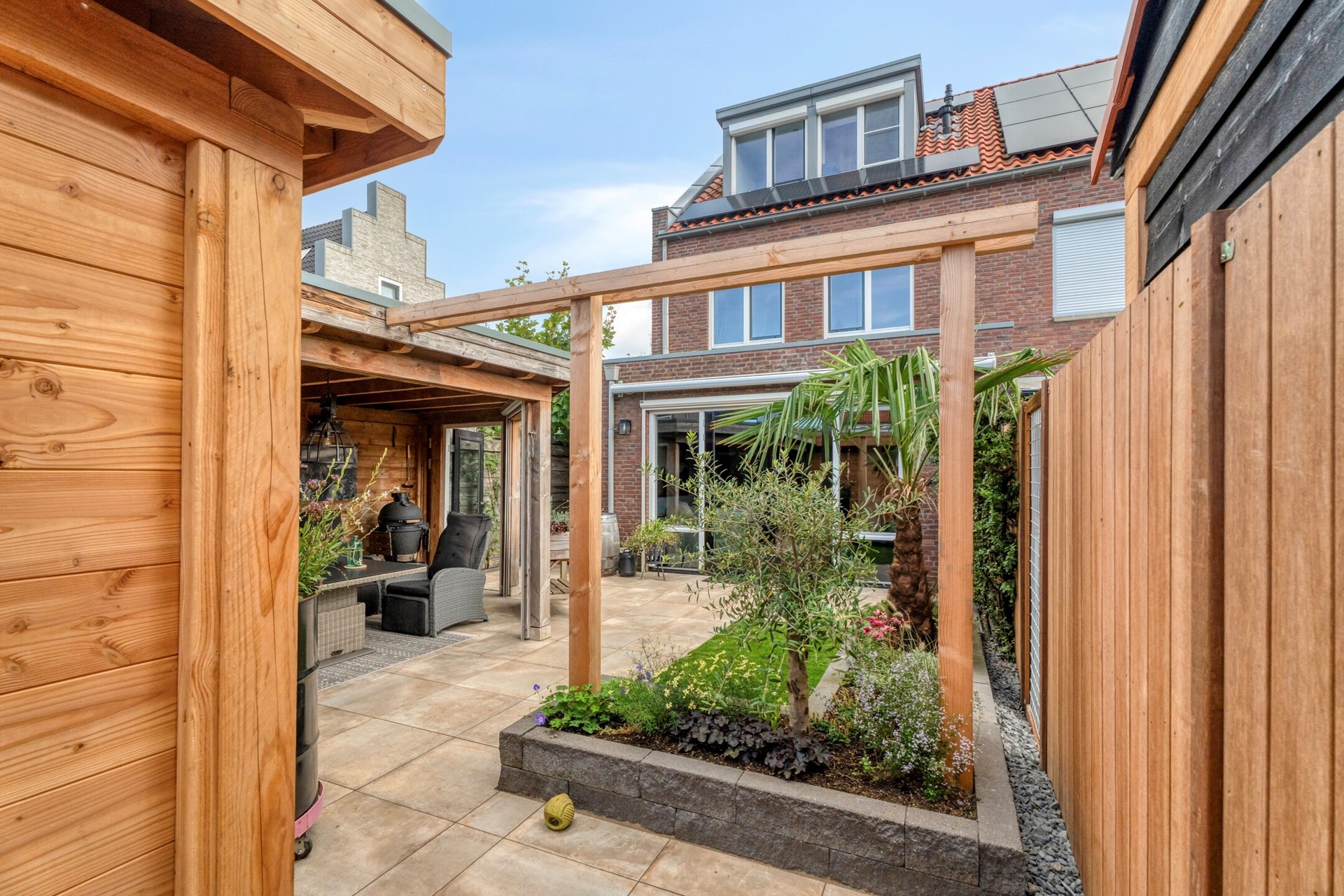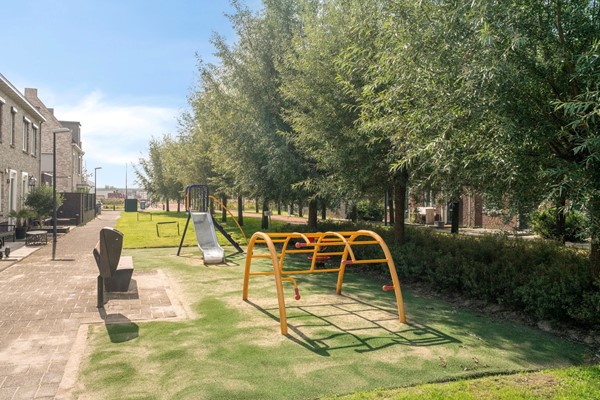 De woning beschikt over een fraai aangelegde achtertuin, die is ingericht met een combinatie van sierbestrating, groenperken en kunstgras. Dankzij de strakke betegeling is de tuin onderhoudsvriendelijk en biedt deze volop ruimte voor een zithoek, speelruimte en extra beplanting. De aanwezigheid van diverse groenaccenten, een palm en olijfboom geven de tuin een speels en sfeervol karakter.