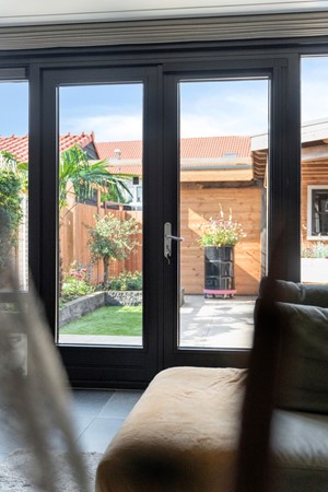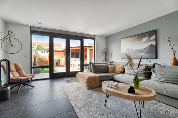 Aansluitend bereikt u de tuingerichte woonkamer. Deze royale en lichte ruimte strekt zich uit over de volledige breedte van de woning en biedt volop mogelijkheden voor een comfortabele zithoek en een ruime eettafel. Via dubbele openslaande deuren heeft u direct toegang tot de achtertuin, waardoor binnen en buiten mooi in elkaar overlopen.