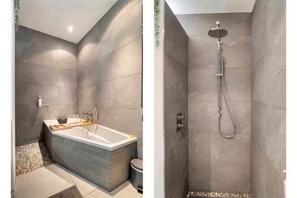 Centraal op de verdieping ligt de badkamer. Deze is modern en compleet uitgerust met een ligbad, tweede toilet, dubbele wastafel en een separate douche. Dankzij de praktische indeling is de badkamer zowel functioneel als comfortabel in gebruik.