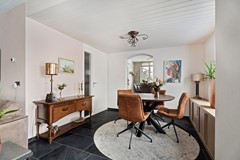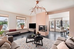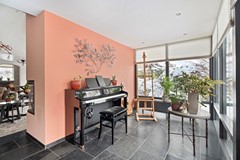 Binnen valt meteen op hoe royaal deze woning is opgezet. Alleen al de begane grond beschikt over maar liefst 111 meter woonoppervlak. In het midden van de woning bevindt zich de riante woonkamer, het hart van het huis. Door de uitbouw is deze ruimte verder vergroot en ontstaat er een extra gedeelte dat je volledig naar eigen wens kunt indelen. De grote raampartijen zorgen hier voor een prachtige lichtinval en versterken het open, ruimtelijke gevoel. Daarnaast beschikt deze woonlaag over een kantoor aan huis en een inpandige garage, wat de woning niet alleen ruim, maar ook praktisch en veelzijdig maakt.