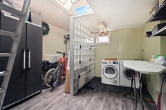Via de bijkeuken is de ruime vliering bereikbaar. Deze strekt zich over de volledige lengte van de woning en biedt volop extra bergruimte. Door de praktische indeling is de vliering uitermate geschikt voor het opslaan van seizoensspullen en overige zaken.