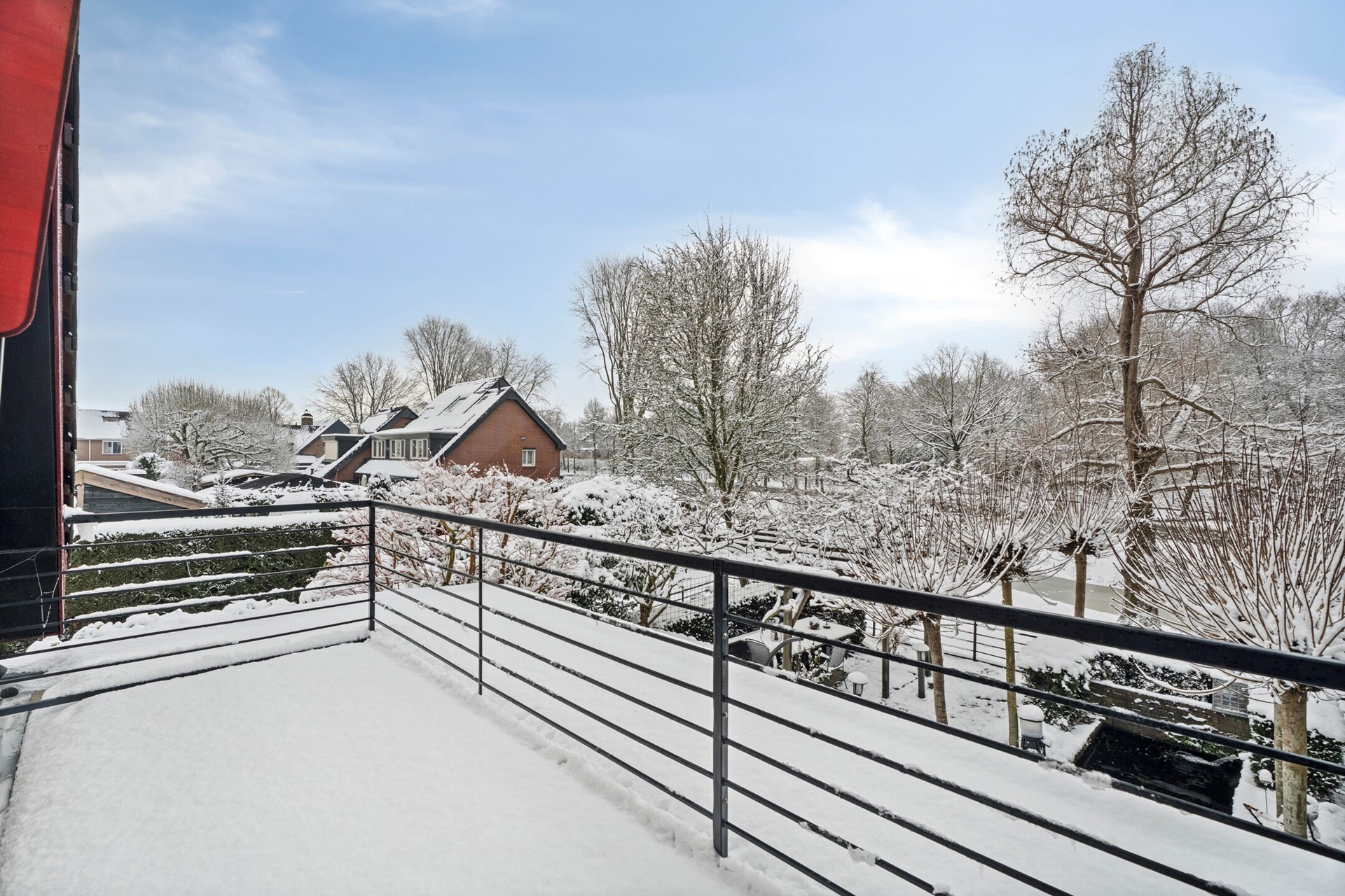 Het balkon is gelegen op het westen en biedt een prettig vrij uitzicht over de groene omgeving. Een fijne plek om in de middag en avond van de zon te genieten.