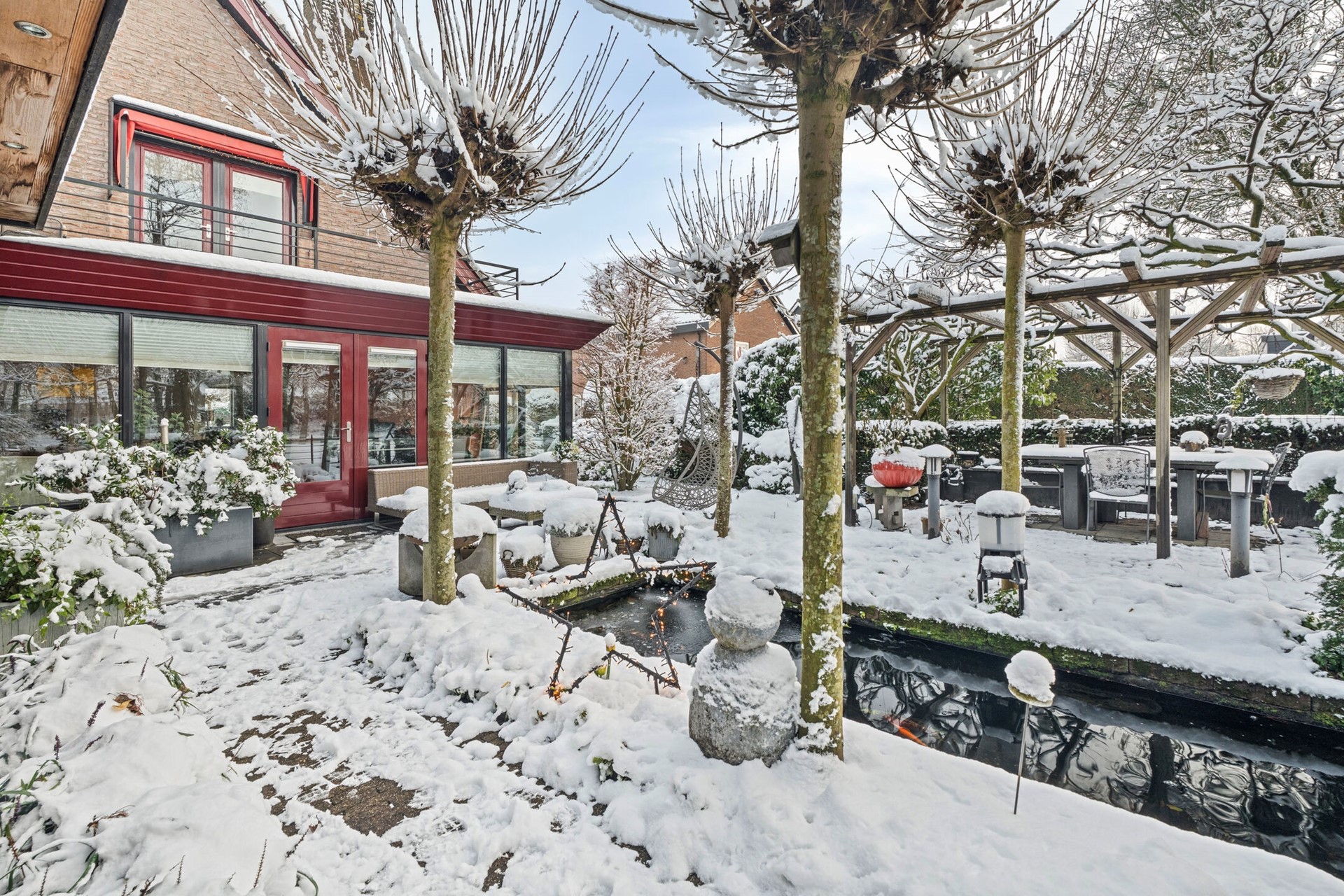Buiten komt alles samen. Het perceel van circa 450 meter is rondom de woning ingericht en biedt een uitzonderlijk gevoel van privacy. De tuin ligt vrij, beschut en groen, waardoor je hier echt ongestoord buiten leeft. De achtertuin is op het westen georiënteerd en vormt samen met de veranda een heerlijke plek om elk seizoen te beleven. Dankzij de screens zit je hier beschut en comfortabel, of je nu geniet van de zon in de middag of lange avonden buiten doorbrengt. Dit is buitenruimte zoals buitenruimte bedoeld is, met rust en vrijheid.