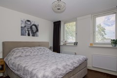 Aan de voorzijde van de woning bevindt zich de ruime hoofdslaapkamer, die door de brede raampartij veel natuurlijk licht binnenkrijgt. Deze kamer biedt voldoende ruimte voor een tweepersoonsbed en heeft een grote ingebouwde kledingkast.