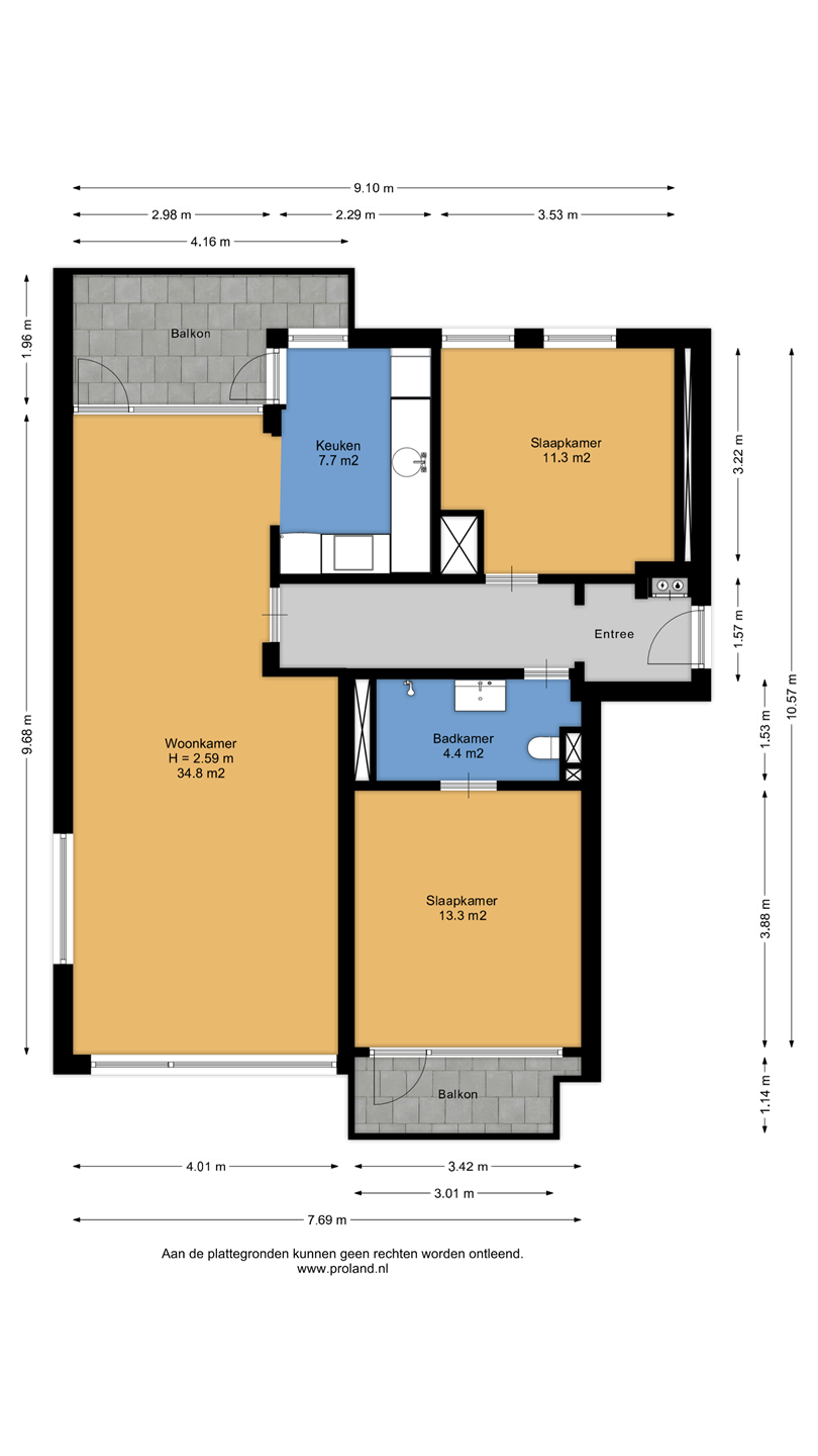 -Twee balkons, waarvan de grootste op het zuidwesten