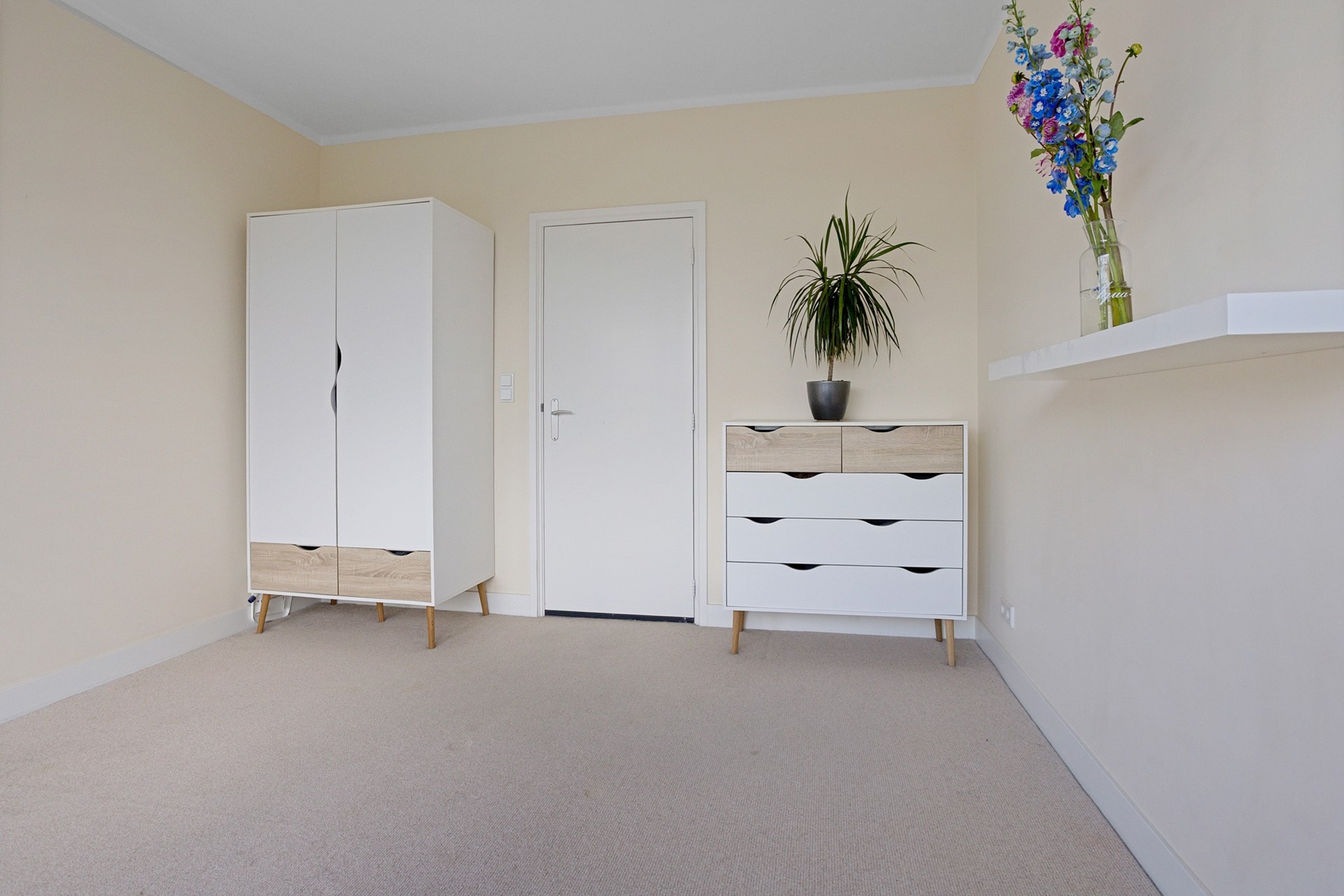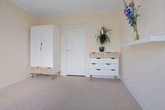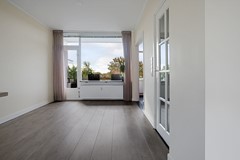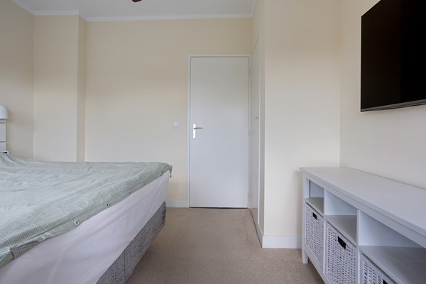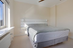 Aan de achterzijde bevindt zich de tweede slaapkamer, met toegang tot het tweede balkon.