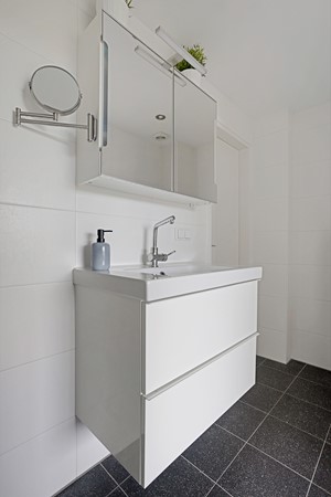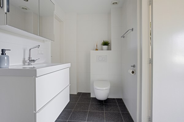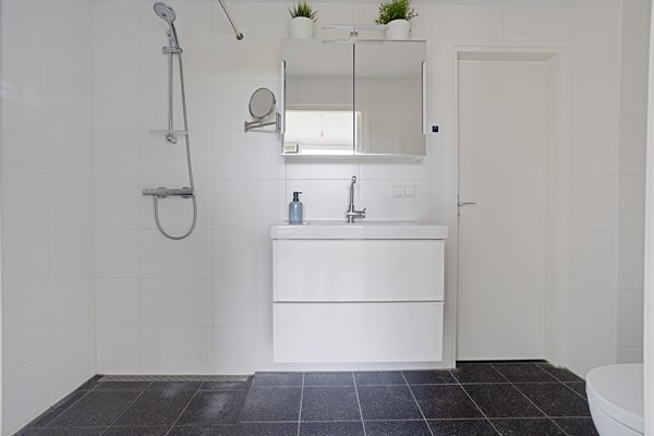 De lichte woon-/eetkamer, met extra zijraam, biedt een prettige lichtinval en een gevoel van ruimte. De badkamer is voorzien van een inloopdouche, wastafelmeubel en toilet.