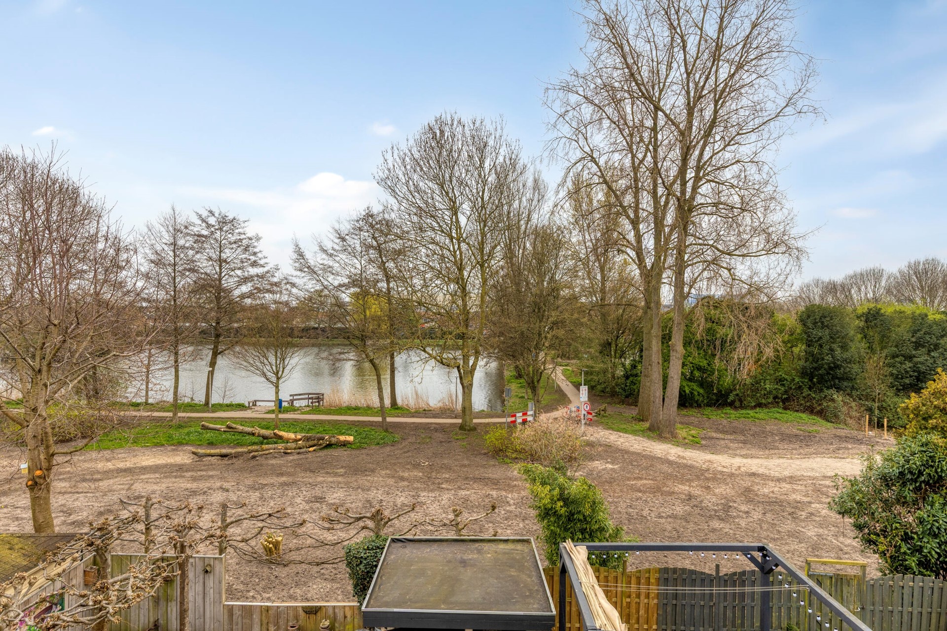 • Achtertuin grenzend aan een park met speelvoorzieningen en visvijver
