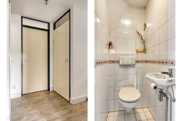 Entree met overkapping, hal, toilet en inpandige berging.