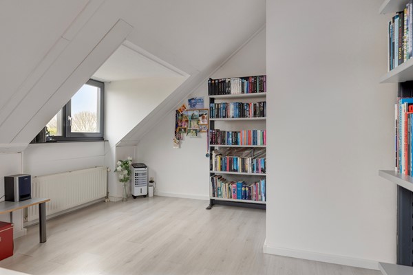 De woning beschikt over een ruime, lichte woonkamer met open keuken, momenteel drie slaapkamers (met mogelijkheid tot vijf), een royale badkamer en een zolderverdieping met dakkapel.