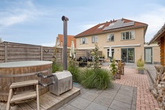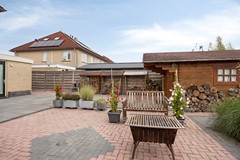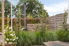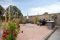 Je kunt de achtertuin zowel vanuit de woonkamer, via de doorgang bij de garage als via het zijpad naast de woning bereiken. Er is voldoende bestrating aanwezig om te kiezen waar je je terras wilt hebben. Er is drainage aangebracht om het water goed af te voeren.