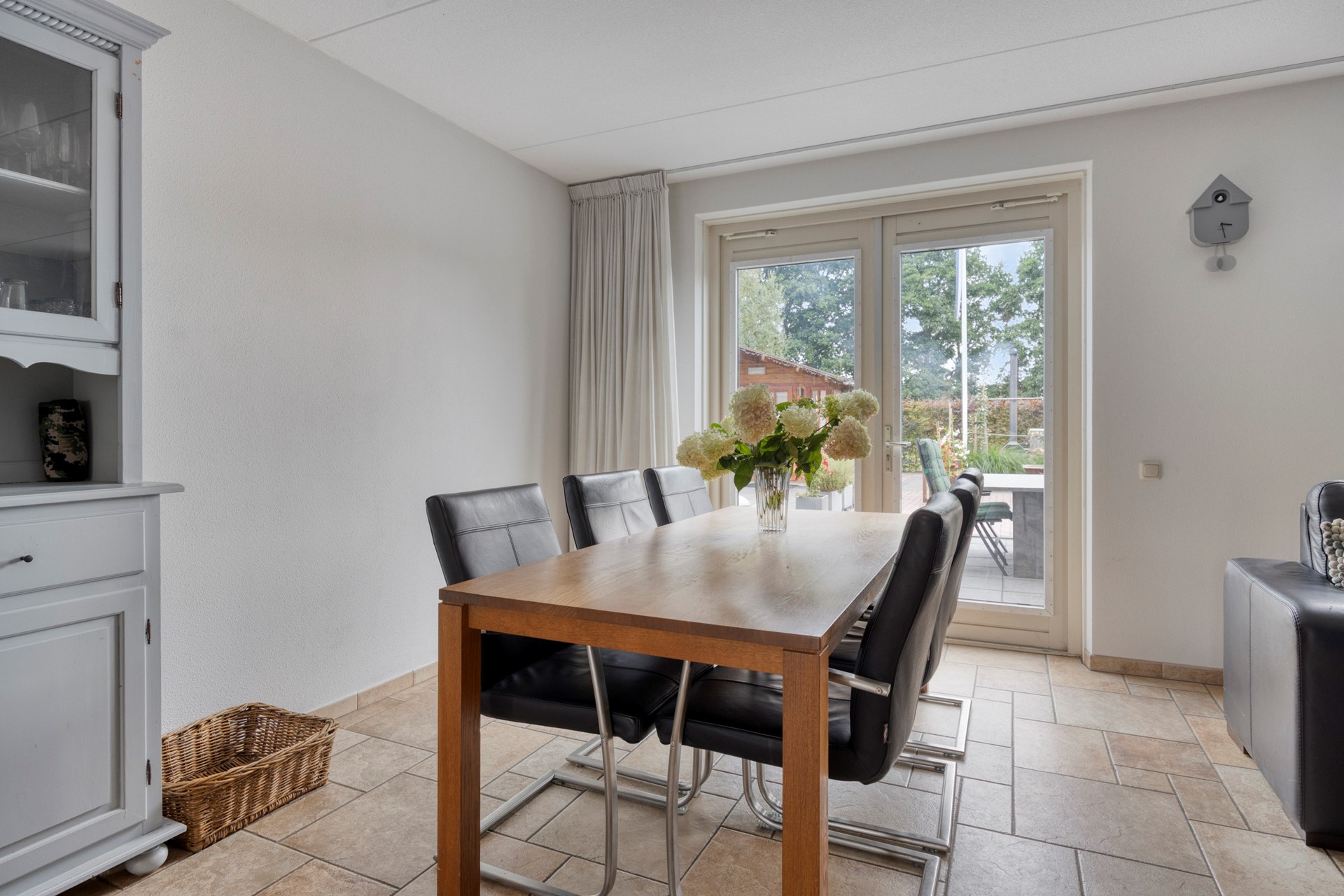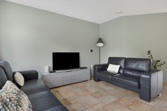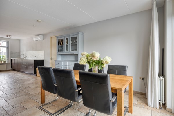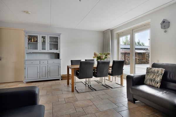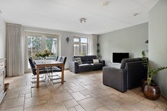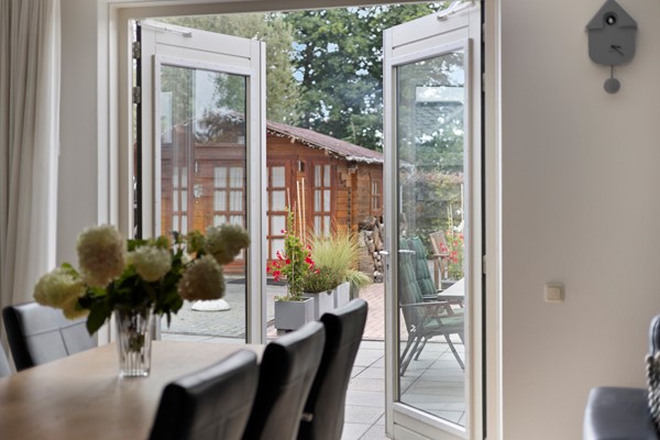 Aan de achterzijde met zicht op de tuin is de woonkamer gesitueerd. Vanuit de openslaande deuren stap je zo het terras op, aan jou om binnen of buiten te eten. Fijn is de aangebrachte airconditioning voor koeling bij warm weer. De zonnepanelen leveren voldoende op met de ligging op het zuiden.