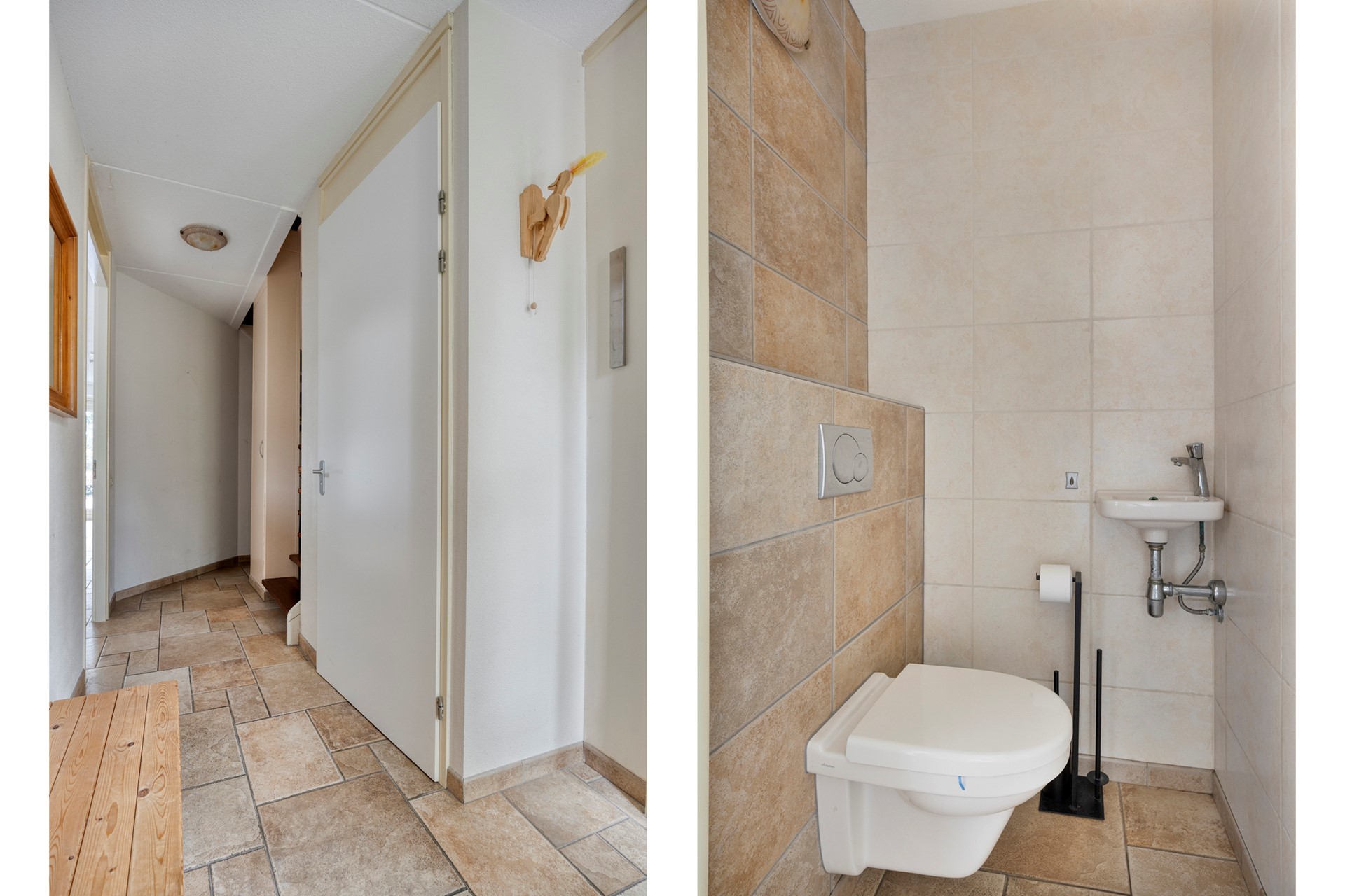 Doordat de voortuin grotendeels voorzien is van bestrating, kun je hier makkelijk twee tot drie auto’s voor je deur parkeren. Je auto onder de carport of in de garage zetten behoort ook tot de mogelijkheden. Ideaal is dat je droog je woning kunt binnenstappen.