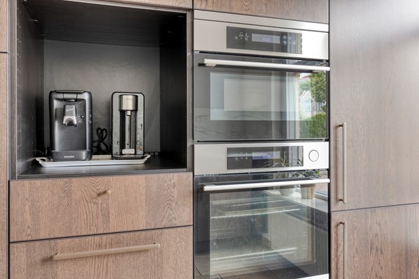 Met de aanwezige inbouwapparatuur te weten een inductie kookplaat met afzuigkap, een vaatwasser, een combi stoomoven en een combimagnetron en een koelkast is de keuken ingericht om een heerlijke maaltijd te bereiden.