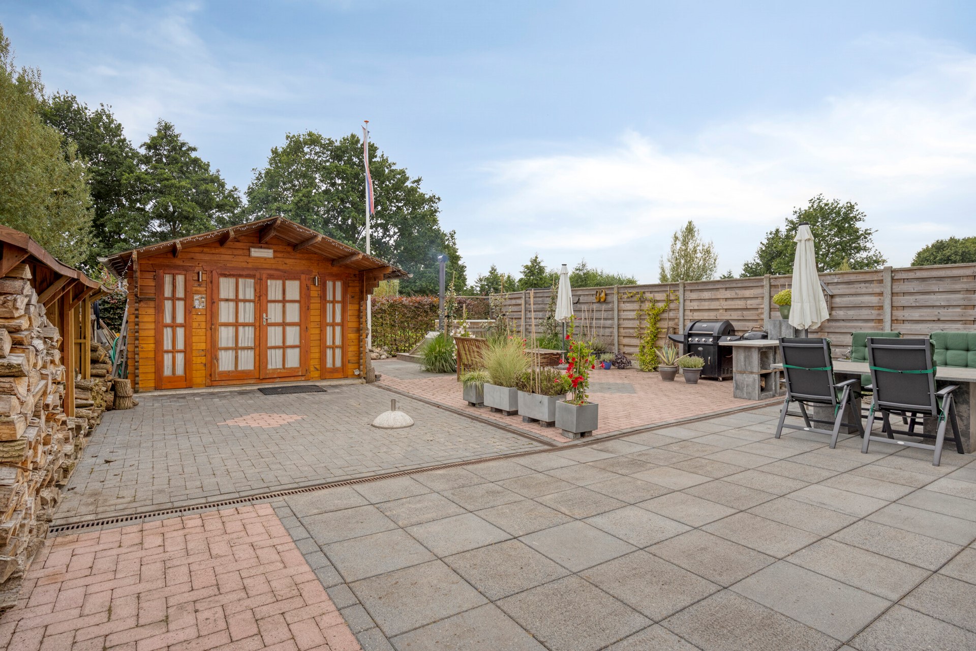 Zit je liever in de zon of in de schaduw, aan jou de keuze. Aan groen en beplanting is ook gedacht en er is een BBQ plek gemaakt. In de tuin staat daarnaast een grote houten schuur, geschikt voor hobby of opslag.