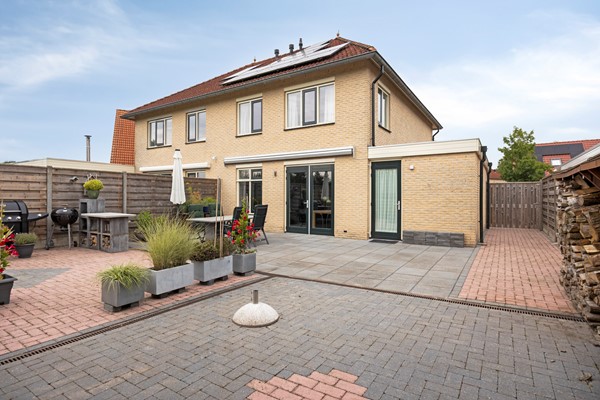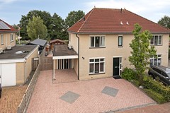Er is een doorgang vanuit de woning naar de garage. De garage met carport is vanaf de straat bereikbaar met dubbele deuren en is daarnaast voorzien van een loopdeur naar de tuin. Naast de woning is een brede schuttingdeur aanwezig zodat je ook te voet vanaf de straatzijde de tuin kunt bereiken of om hier met je aanhanger te komen.