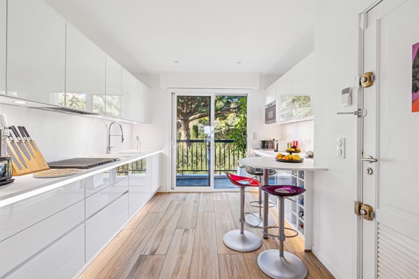 In the heart of a high-end residence, located on the heights of the historic English quarter of La Croix des Gardes, nestled in a 3-hectare park with a swimming pool and tennis court, this spacious apartment on a high floor has been completely renovated in 2021, offering a panoramic view of the sea, the Esterel mountains, and the Bay of Cannes.